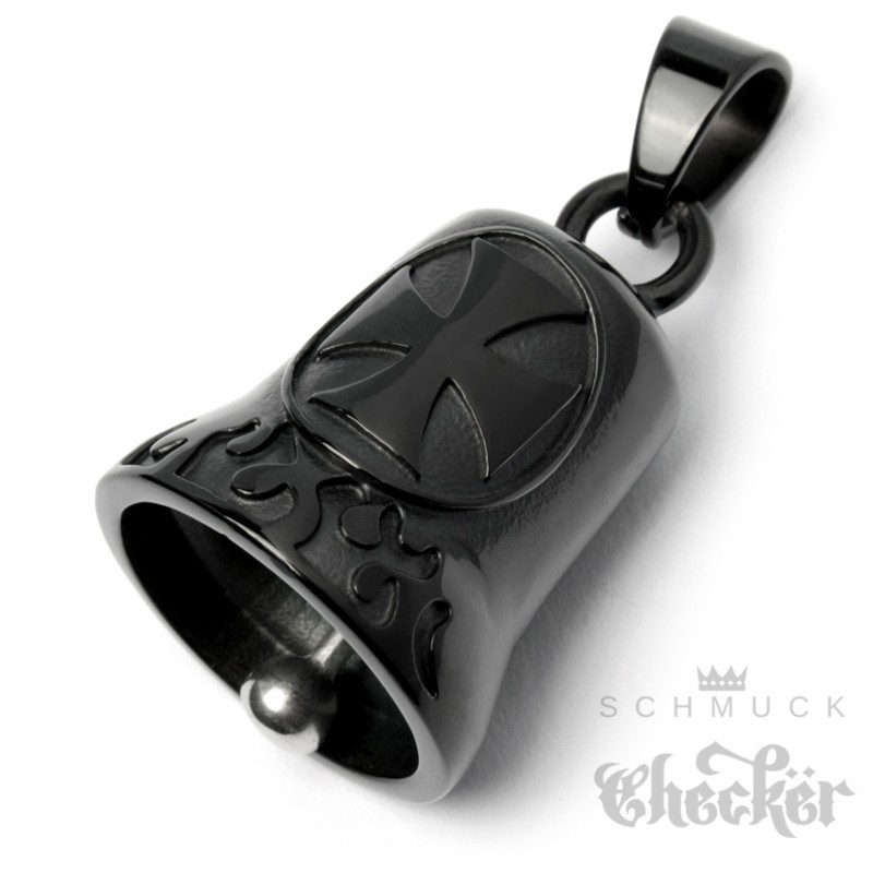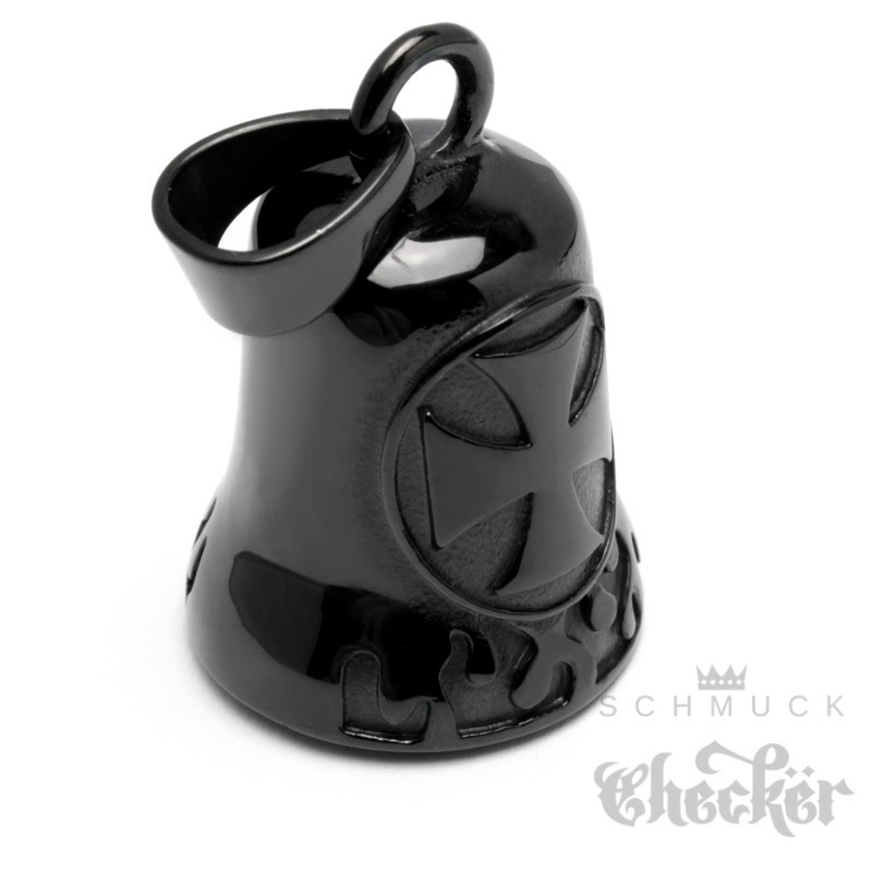 Bikerbell schwarz mit Eisernem Kreuz Edelstahl Motorrad-Glocke Biker Glücksbringer