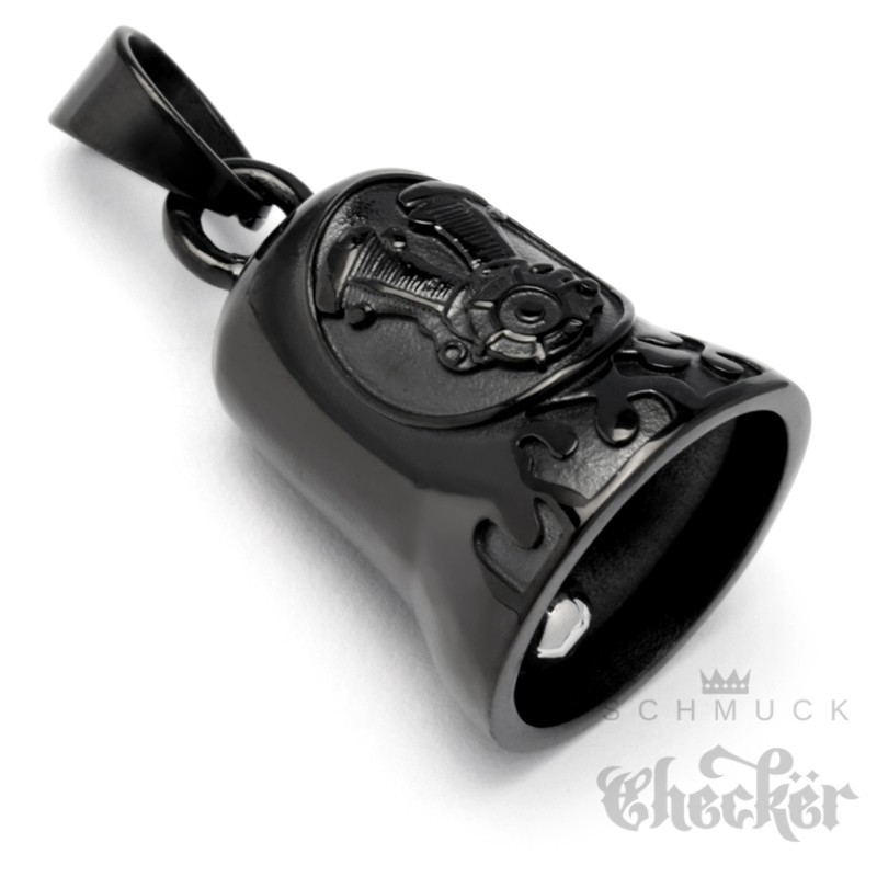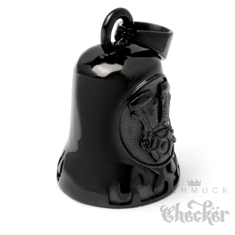 Bikerbell schwarz mit V2 Motorblock Engine Motorrad Glücksglöckchen Biker Geschenk