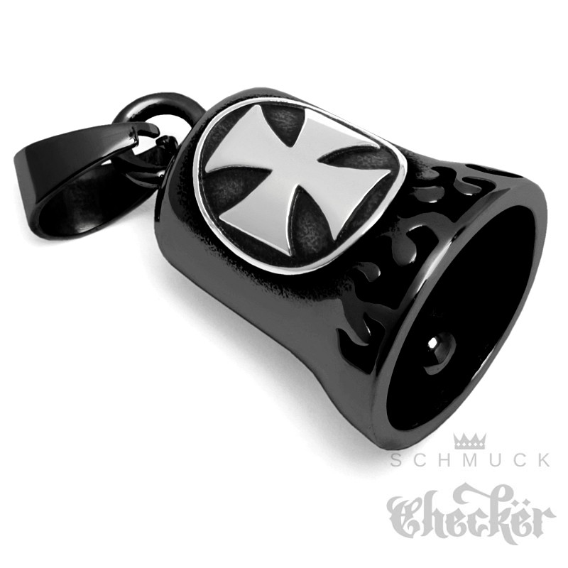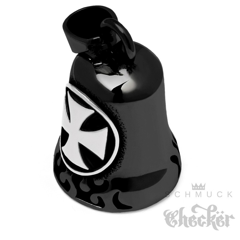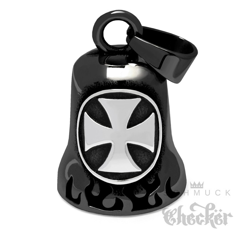 Eisernes Kreuz silberfarben auf schwarzder Edelstahl Bikerbell MOtorrad Geschenk