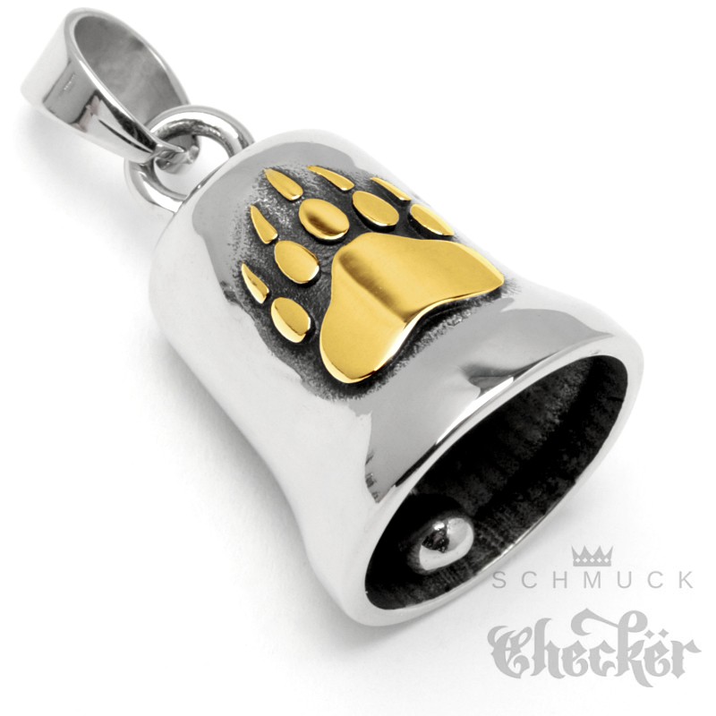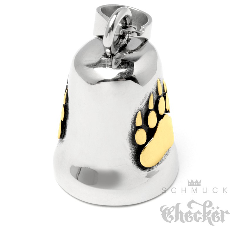 Goldene Bärentatze auf hochwertiger Biker-Bell aus Edelstahl Glücksbringer Geschenk