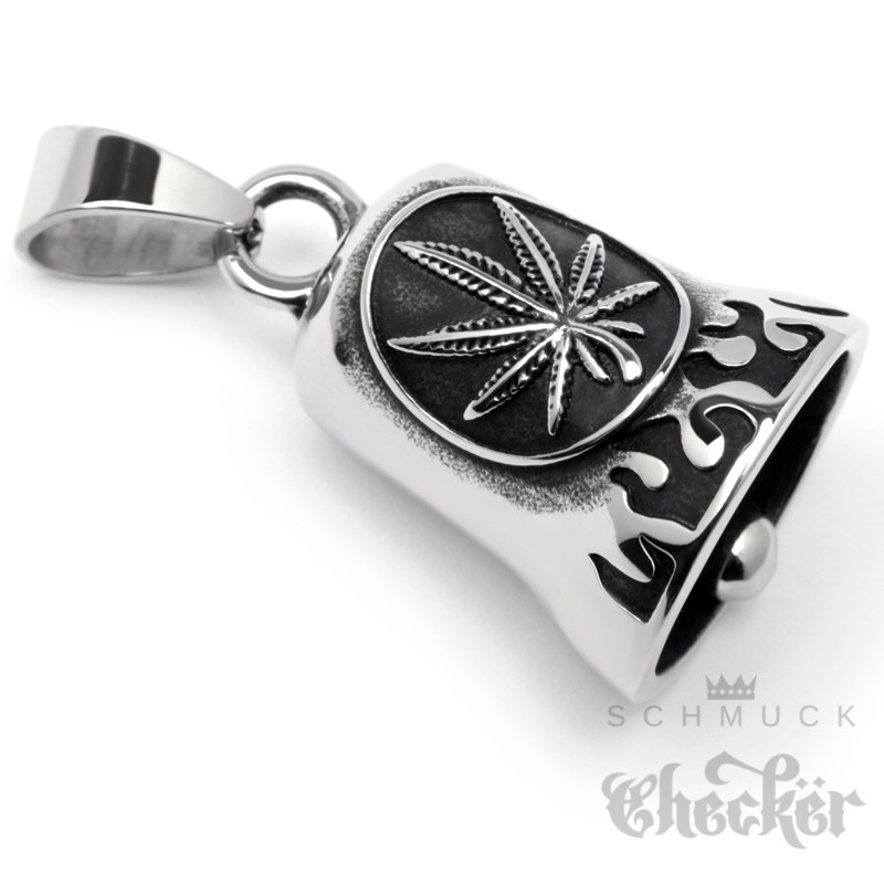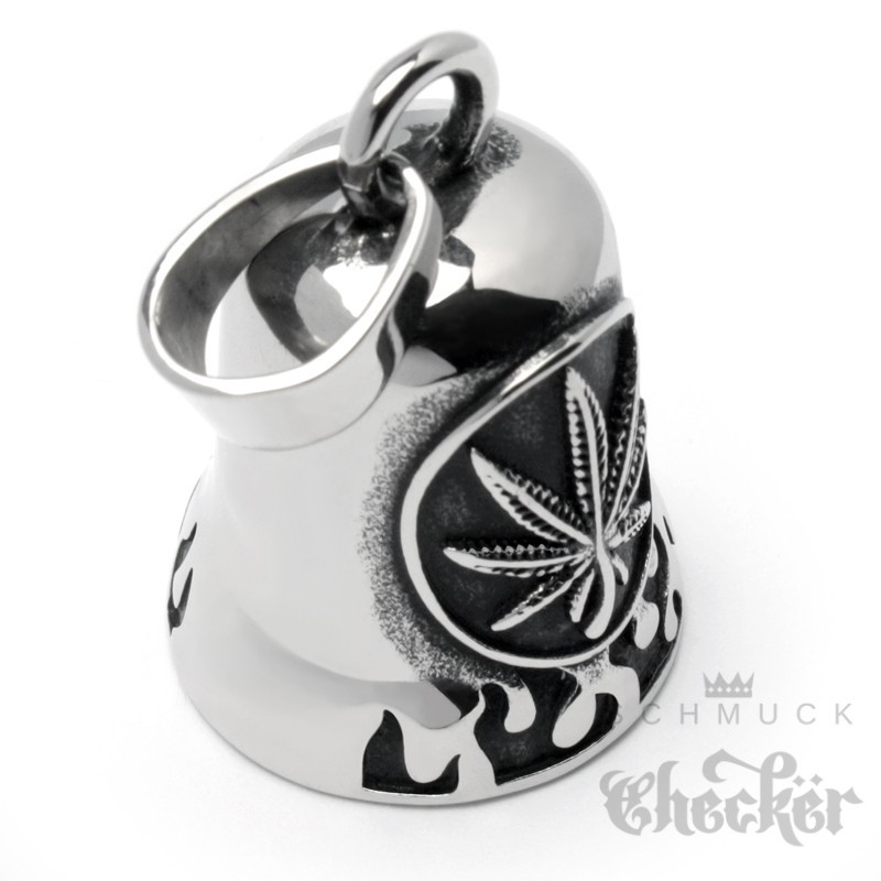 Hanfblatt Bikerbell aus Edelstahl Weed Marihuana Glücksglöckchen Motorrad Bell