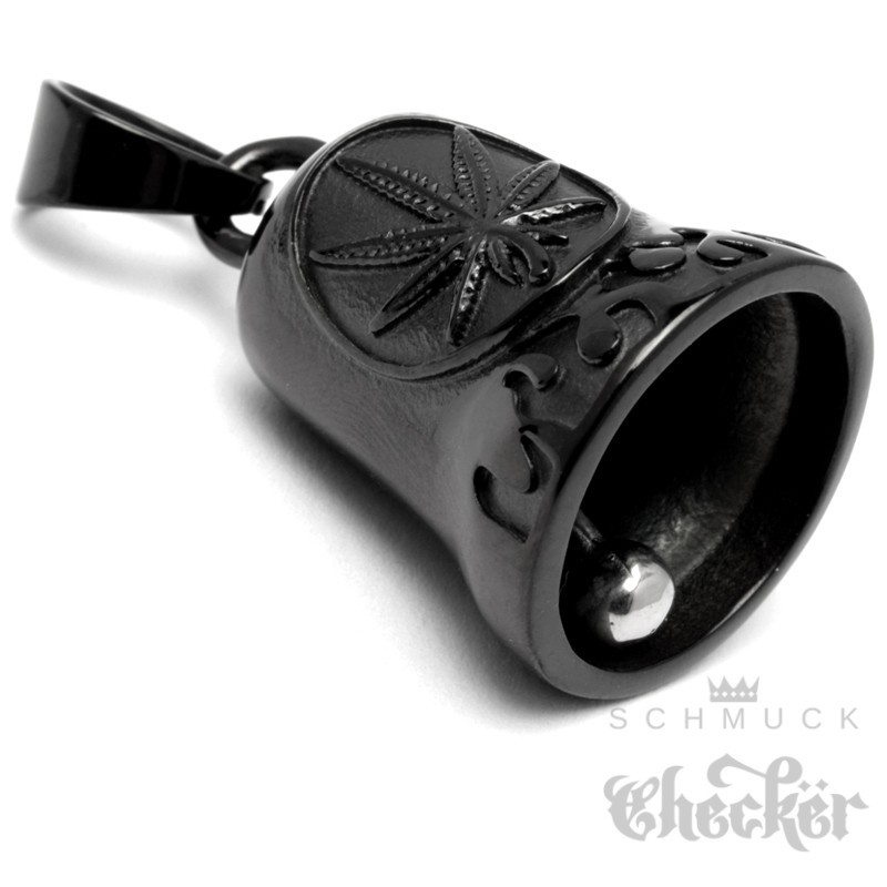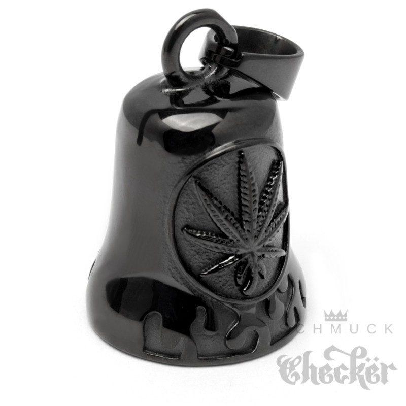 Hanfblatt Schwarze Bikerbell aus Edelstahl Weed Marihuana Glücksglöckchen Geschenk