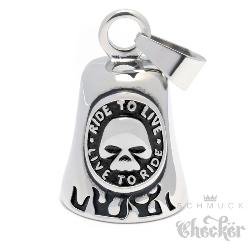Live to Ride Bikerbell mit Totenkopf aus Edelstahl Motorrad Glocke Biker Geschenk