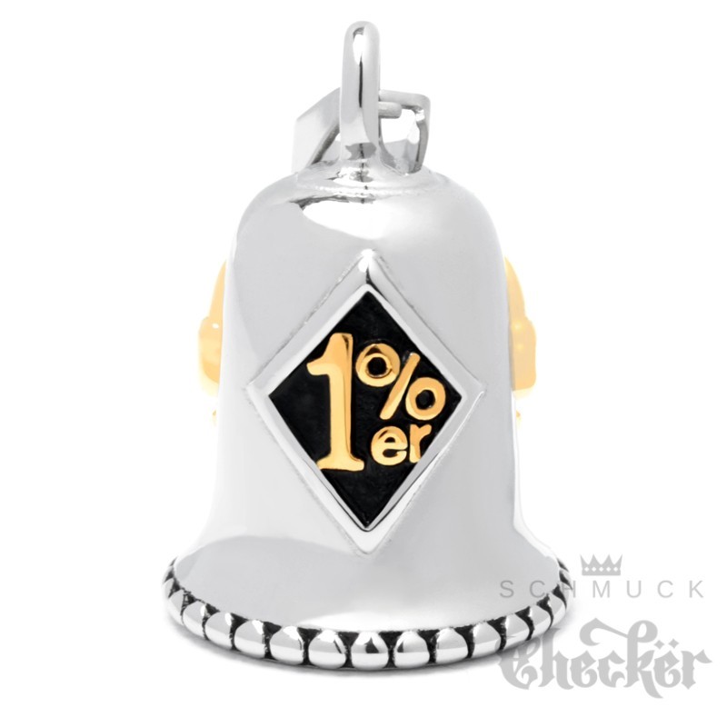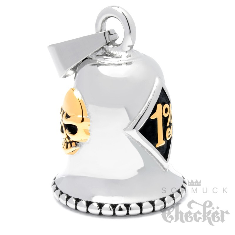 Onepercenter Biker-Bell aus Edelstahl silber gold poliert Einprozenter Glücksglocke