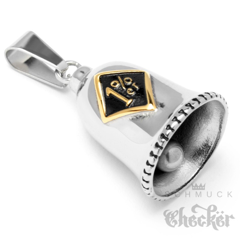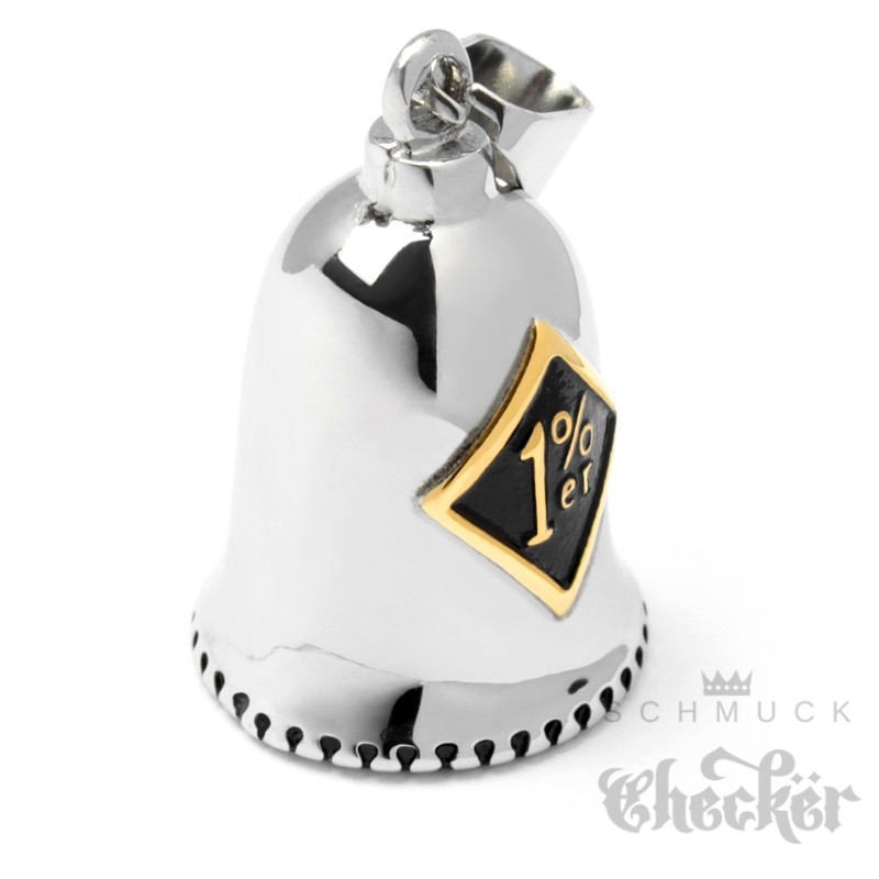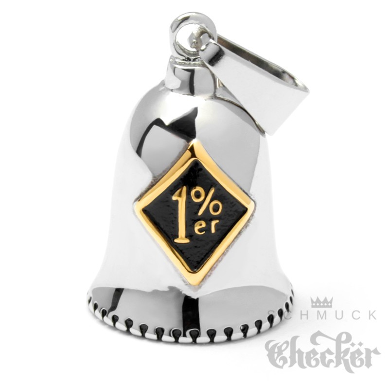 Onepercenter Bikerbell aus Edelstahl silber & gold 1%er Glücksbringer Guardian Bell