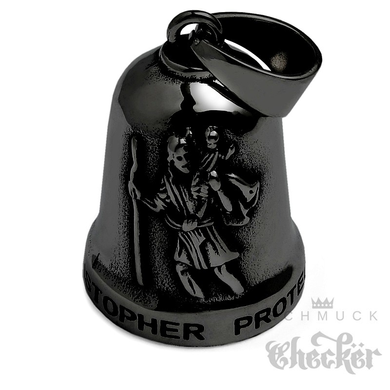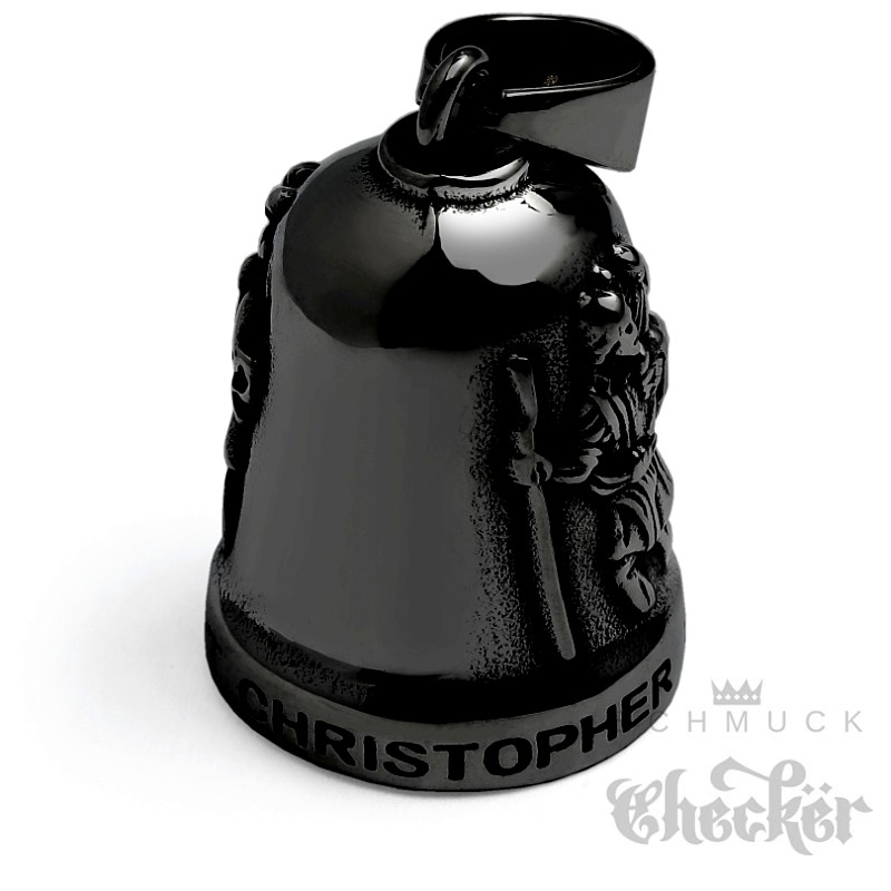 Schwarze Biker-Bell mit Heiligem Christopher Motorradfahrer Glücksbringer Glocke