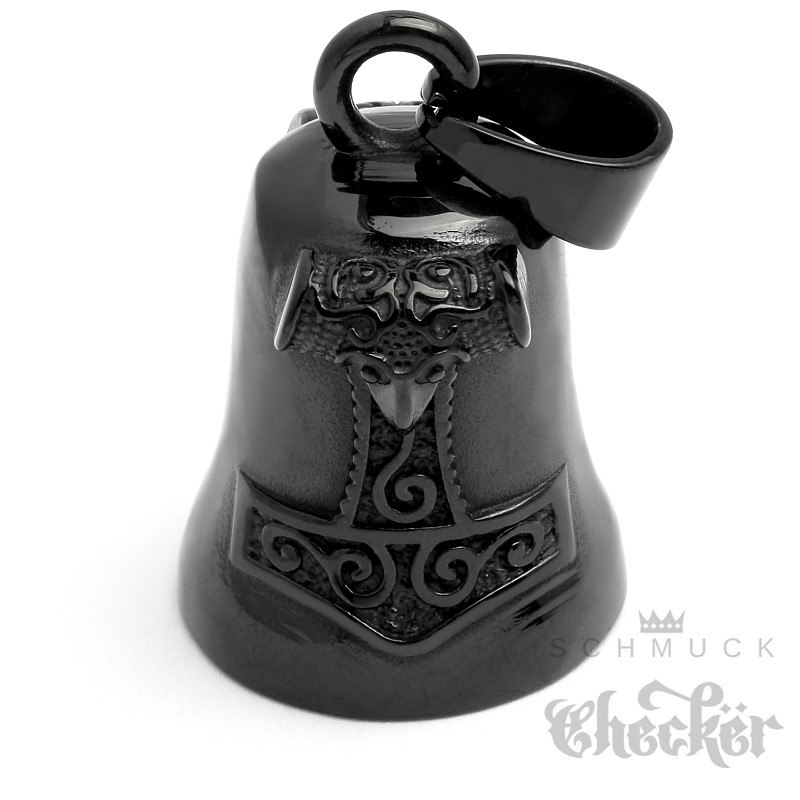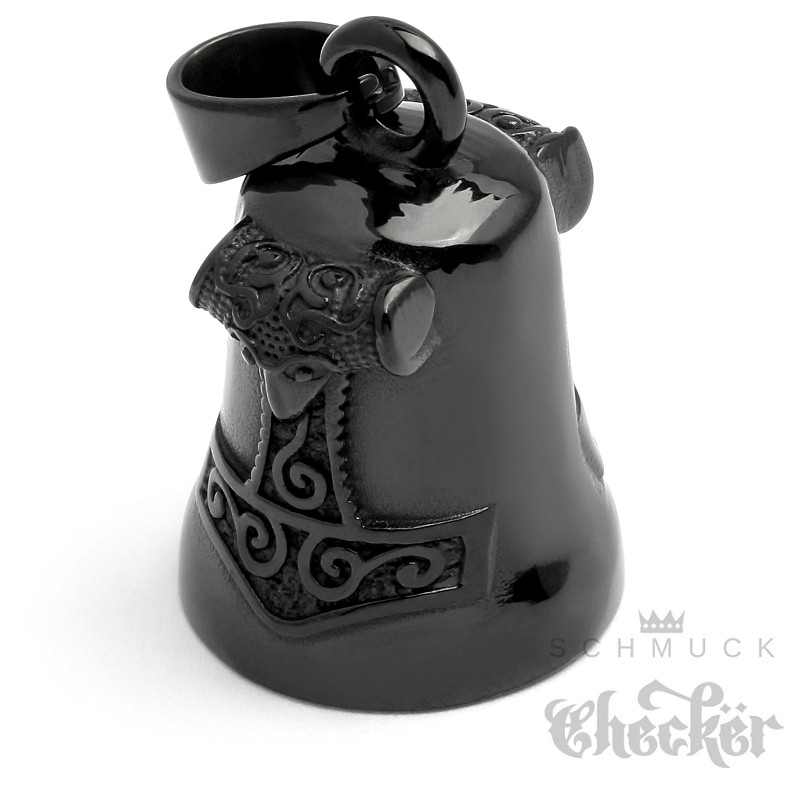 Schwarze Biker-Bell mit Thors Hammer Mjölnir Motorradfahrer Glücksbringer Glocke