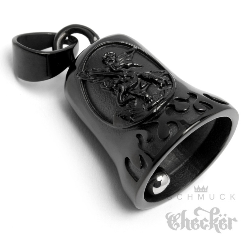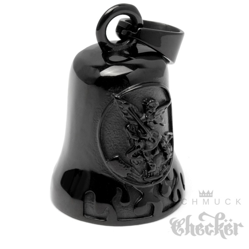 Schwarze Bikerbell mit St. Michael Motiv Glücksbringer Motorradfahrer Schutzengel