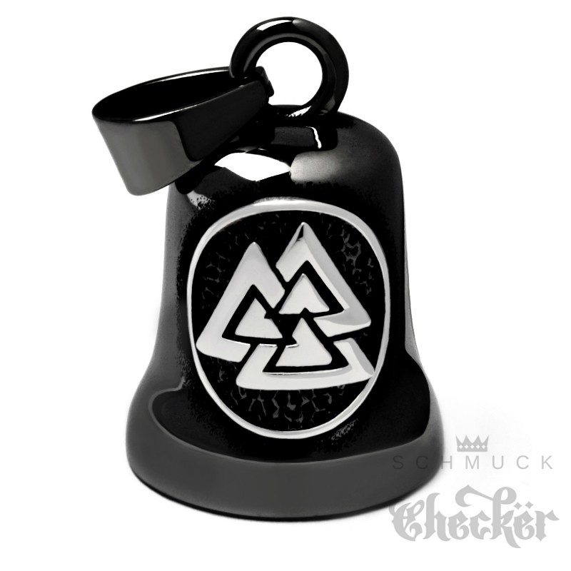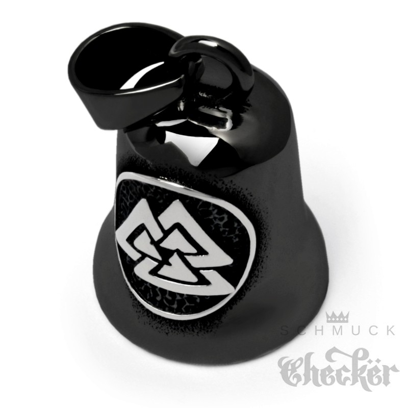 Silberner Valknut schwarze Bikerbell Wotansknoten Wikinger Motorrad Glücksbringer