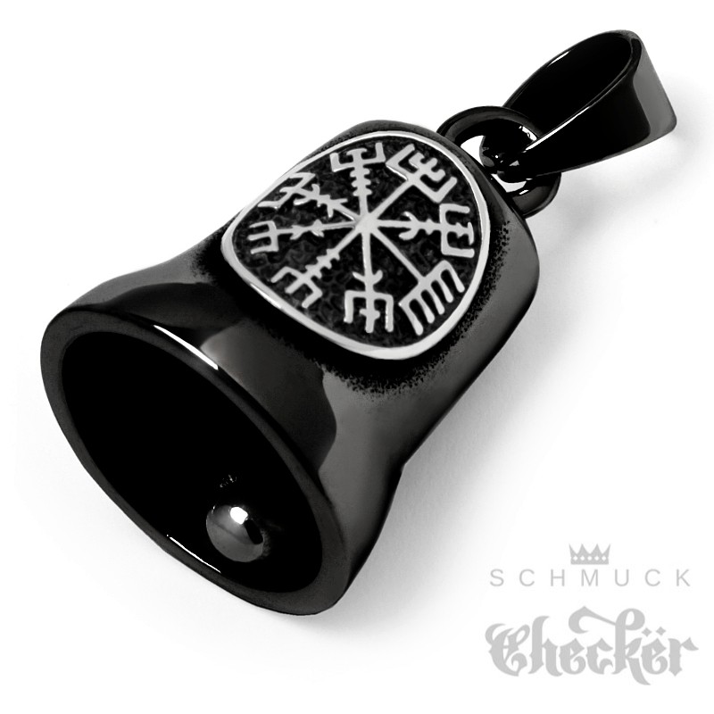 Silberner Vegvisir auf schwarzer Bikerbell Runenkompass Motorrad Glücksbringer