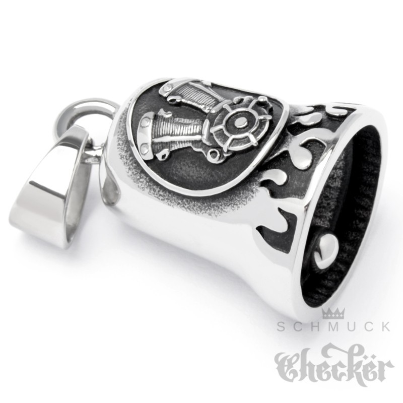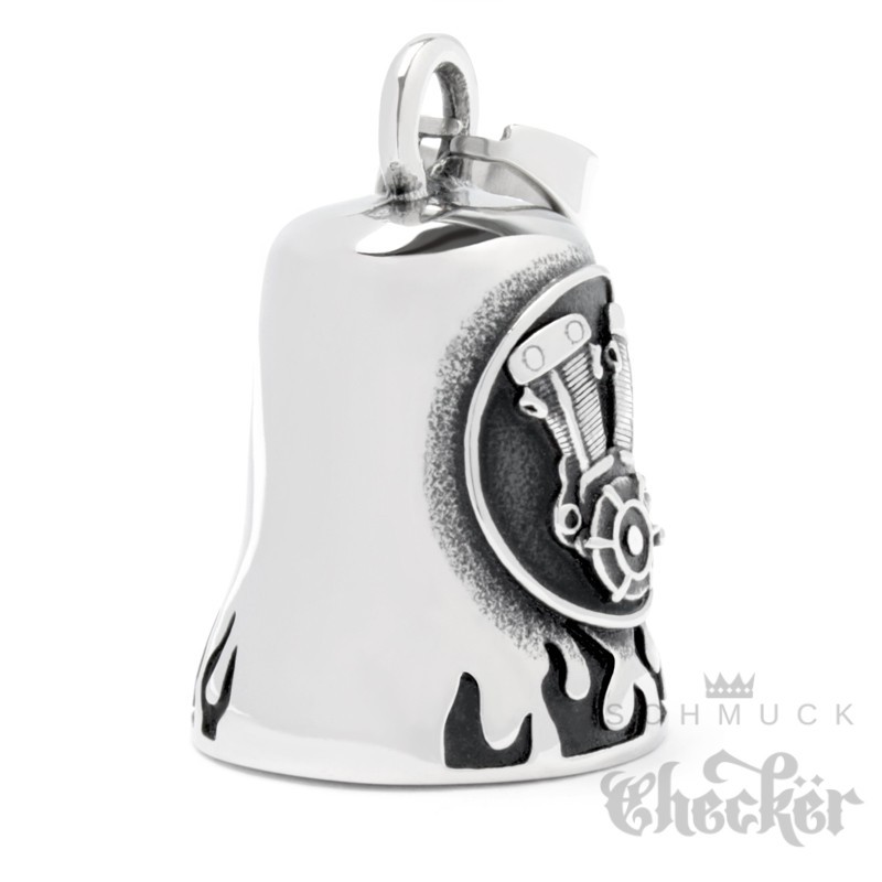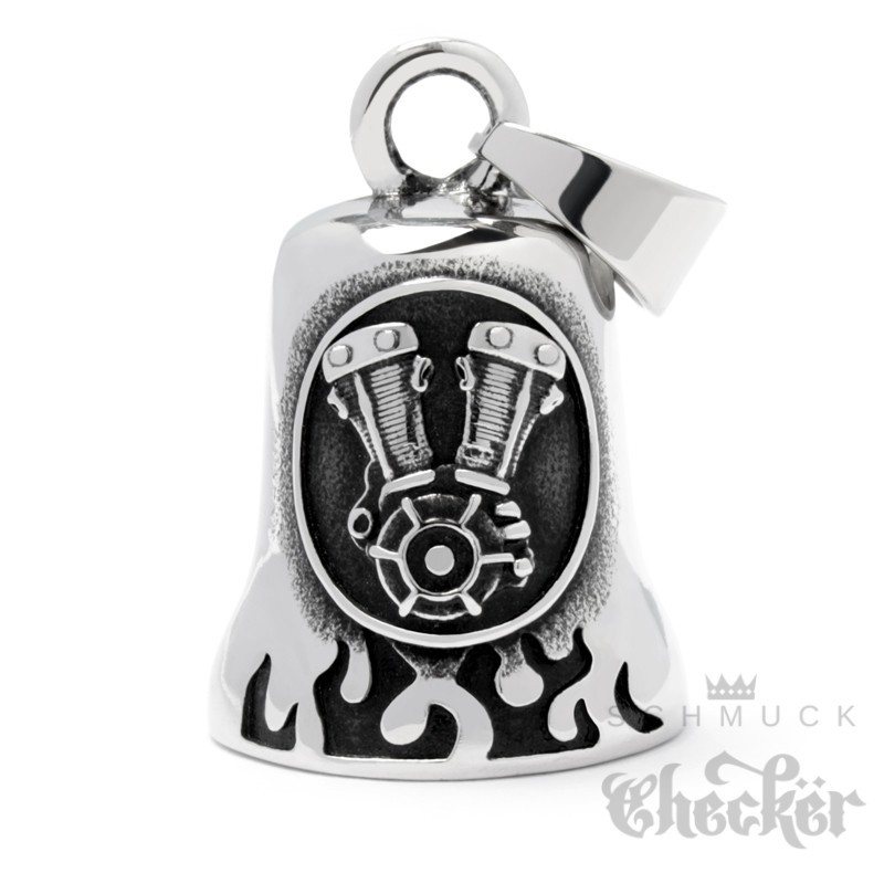 V2 Motorblock Biker-Bell aus Edelstahl Motorrad Glücksglocke Engine Motor silber