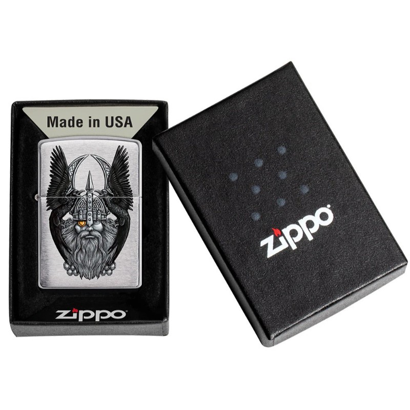 Echtes Zippo, mit dem unverwechselbaren Zippo "Klick", kommt dieses windfeste Feuerzeug in einer originalen Geschenkbox verpackt. Das Feuerzeug mit Göttervater-Motiv aus der nordischen Mythologie besteht aus rostfreiem Metall und funktioniert praktisch überall. Das Feuerzeug wurde in den USA hergestellt und kann jederzeit mit Feuerzeugbenzin nachgefüllt werden, für einen lebenslangen und nachhaltigen Gebrauch.