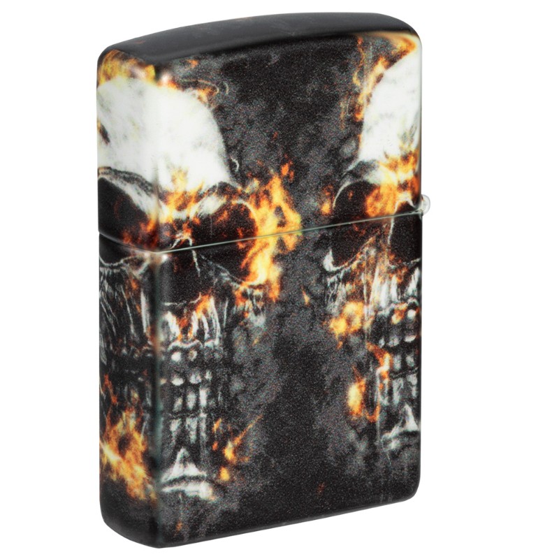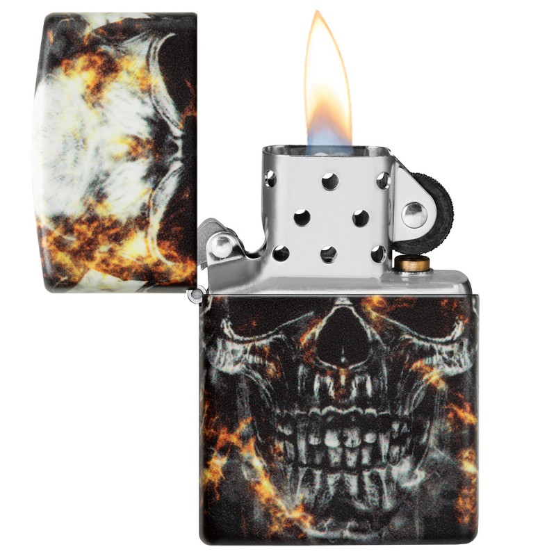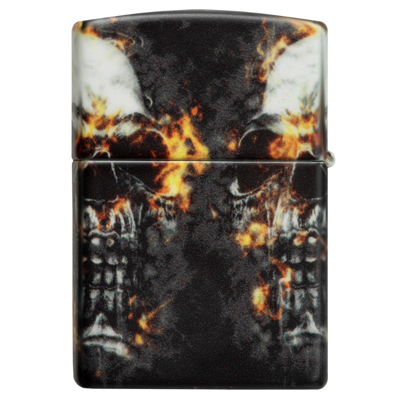 Heißes Feuerzeug mit Totenkopf und Flammen schwarzes Zippo Benzinfeuerzeug Geschenk