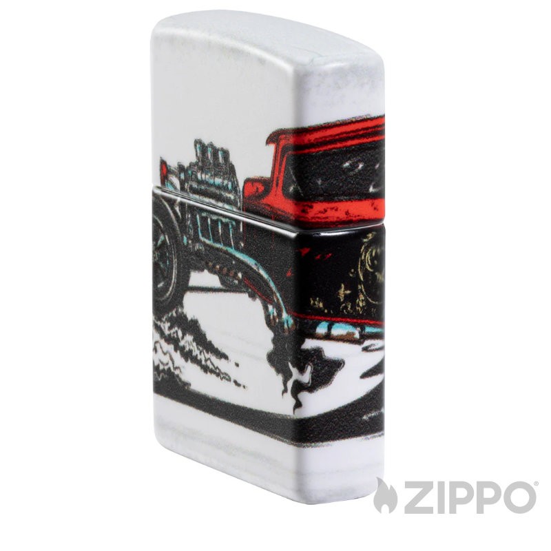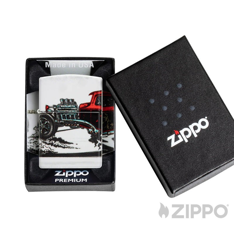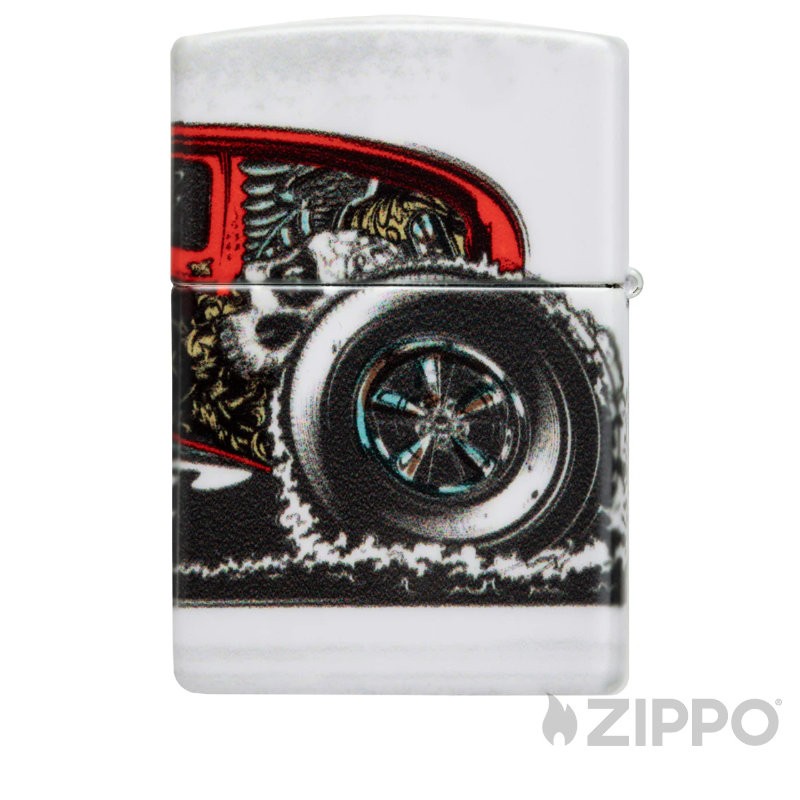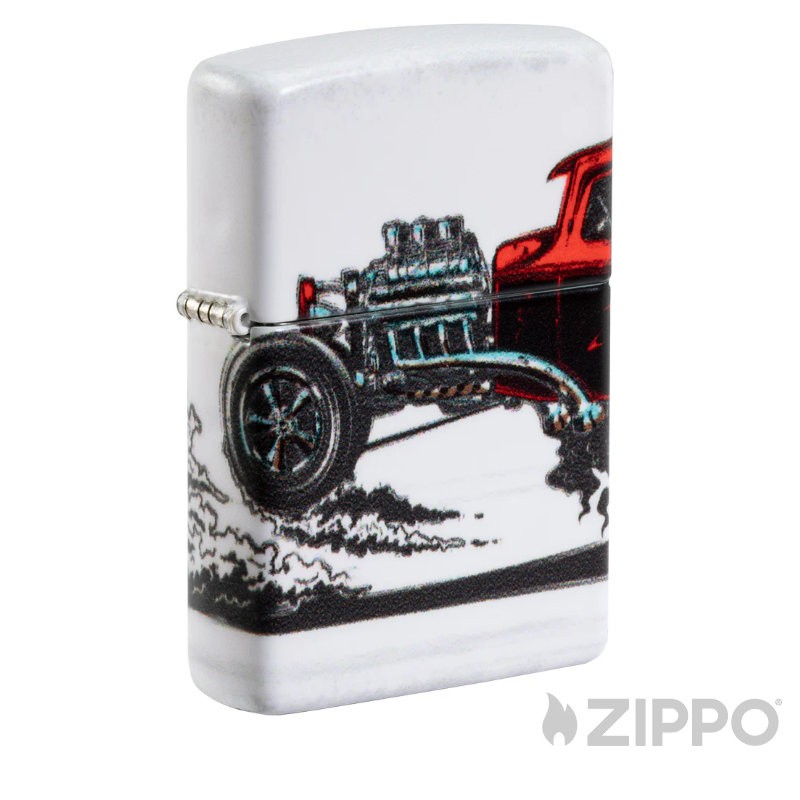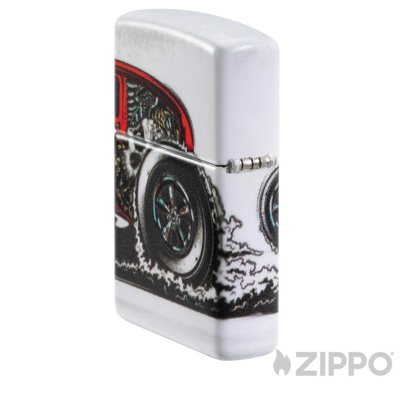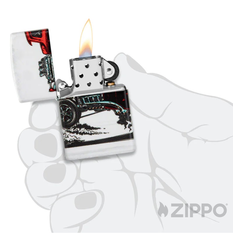 Weißes Feuerzeug mit rotem Cartoon Hot Rod Auto Benzinfeuerzeug Premium Zippo