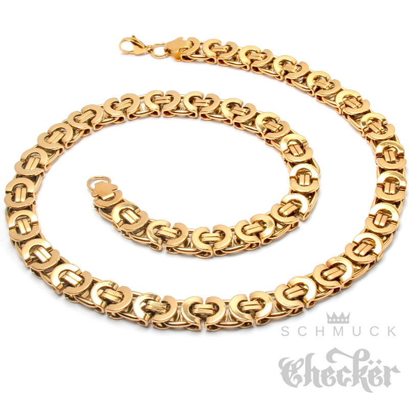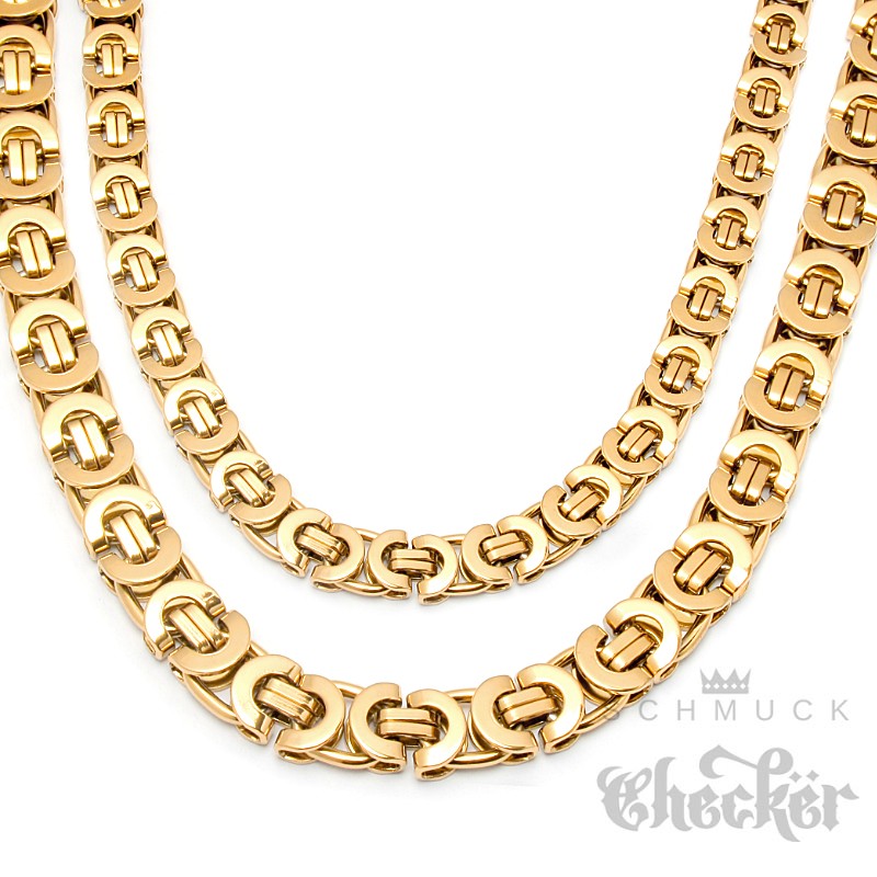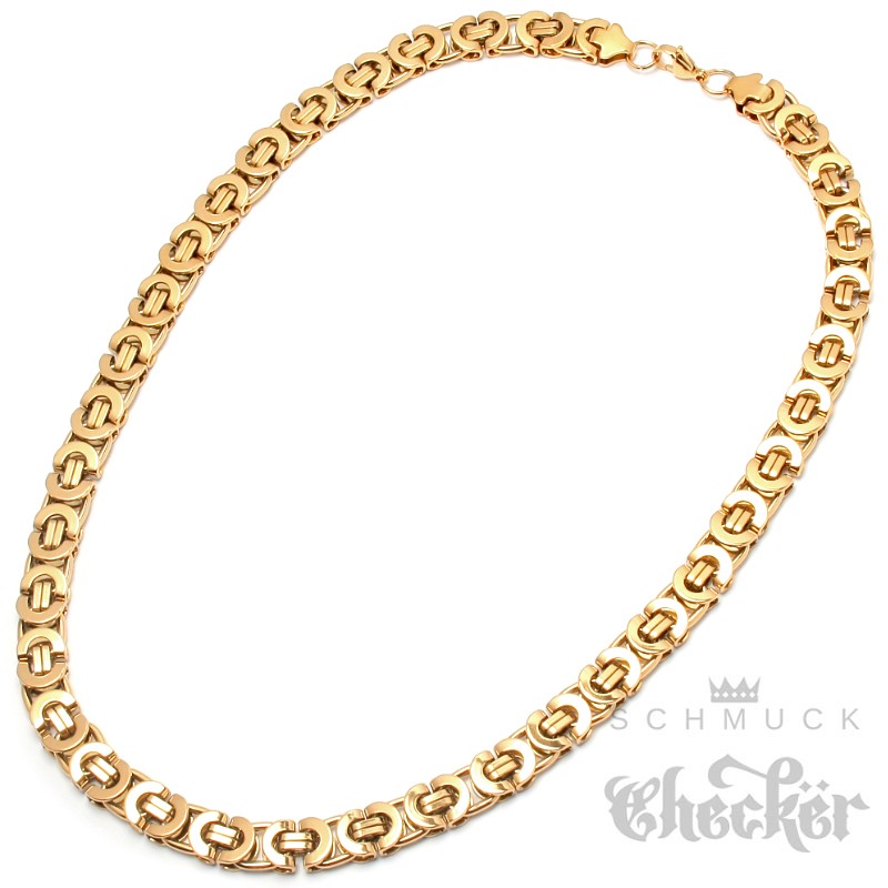 Breite Goldkette Byzantiner Königskette Männer Schmuck Edelstahl vergoldet flach