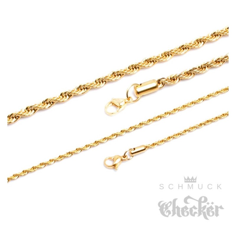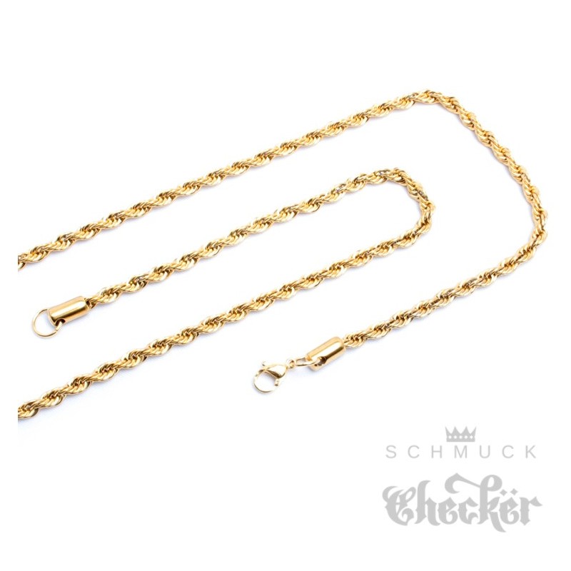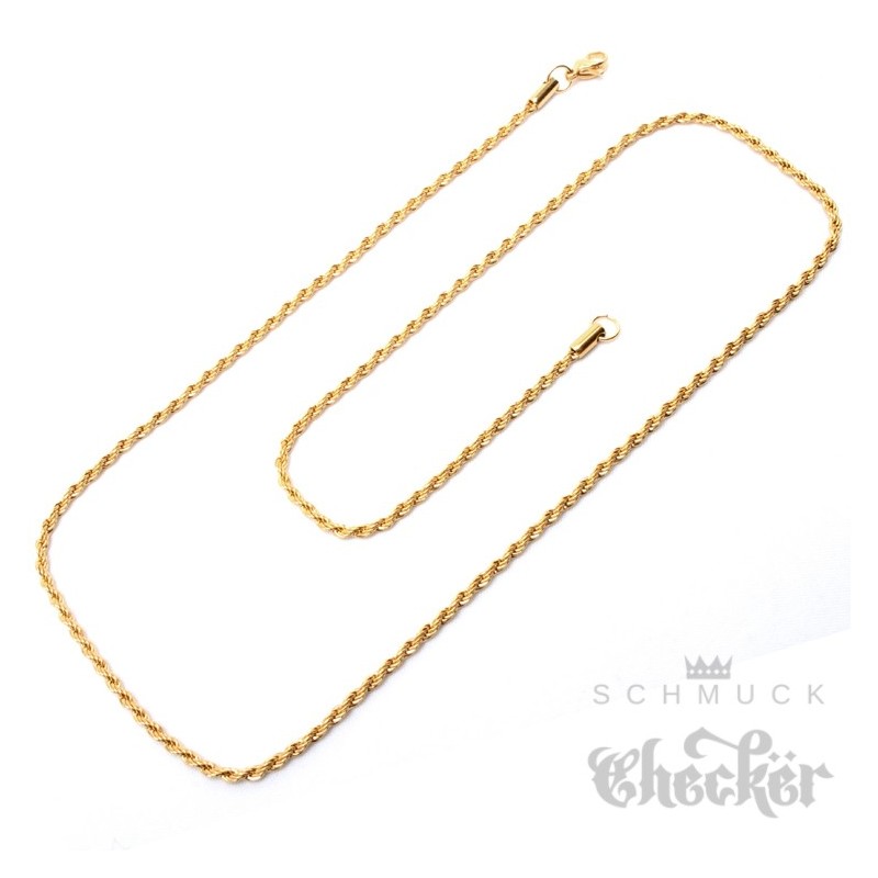 Kordelkette aus Edelstahl gold dünn gedreht Damen Herren Kette Halskette 55cm