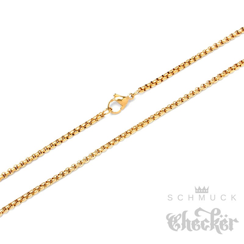 - Die Halskette wurde mit aufwendiger Elektrolyse hochwertig vergoldet. Die Goldbeschichtung ist also direkt mit dem Edelstahl verbunden, für maximalen Halt.