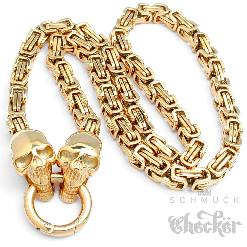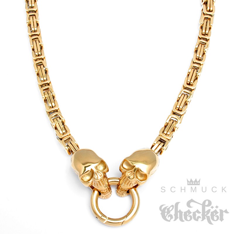 Goldene Totenkopf Königskette mit Ringverschluss aus Edelstahl Goldkette für Biker