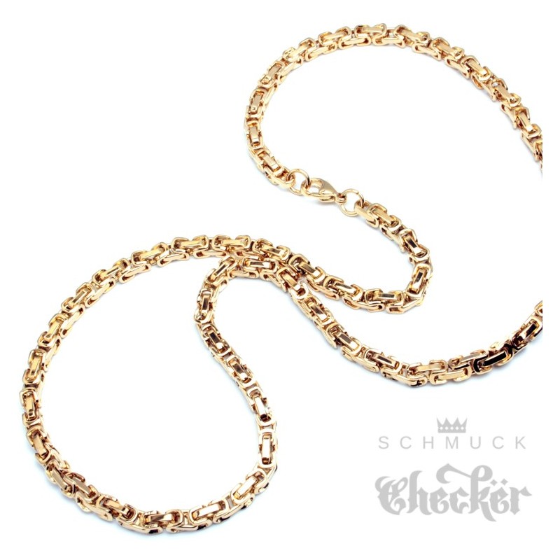 Schmale Königskette für Herren aus hochwertigem Edelstahl gibt’s hier zu kaufen. Endlich mal eine Königskette die etwas dezenter und trotzdem maskulin ist. Sie kann auch gut in Kombination mit Kettenanhängern getragen werden. Die Königskette ist goldfarben, ca. 4,5mm dick und hat eine Länge von 60cm. Die Halskette kann auch problemlos gekürzt werden.