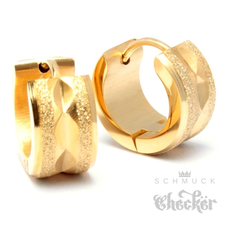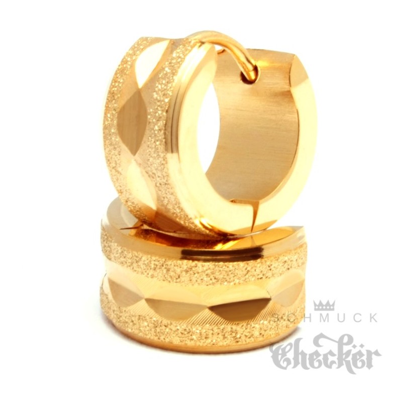 Edelstahl Herren Ohrringe Klapp-Creolen gold diamantiert funkelnd glizernd 13mm Ø
