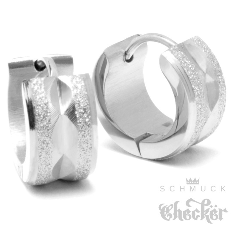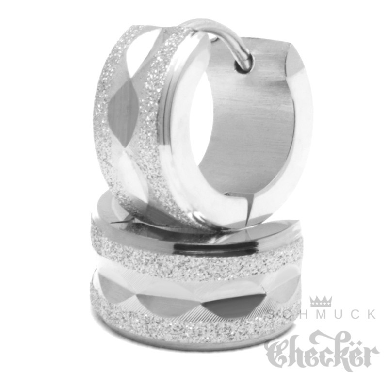Edelstahl Herren Ohrringe Klapp-Creolen silber diamantiert funkelnd glizernd 13mm Ø