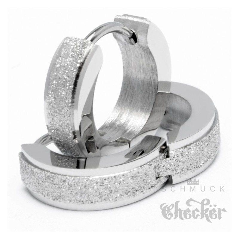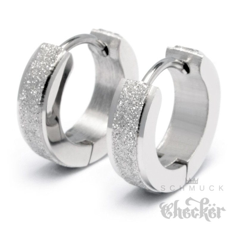 Edelstahl Ohrringe Klapp-Creolen silber diamantiert funkelnd schmal dünn 13mm Ø
