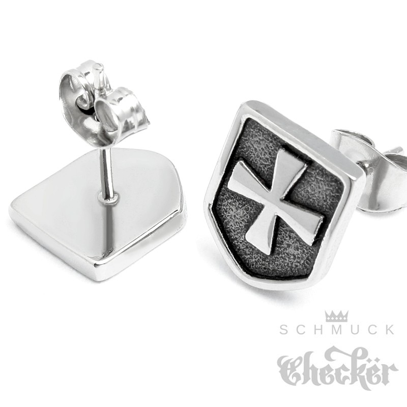 Eisernes Kreuz Herren Ohrstecker Edelstahl Ohrringe Schild Ritterkreuz silber Biker