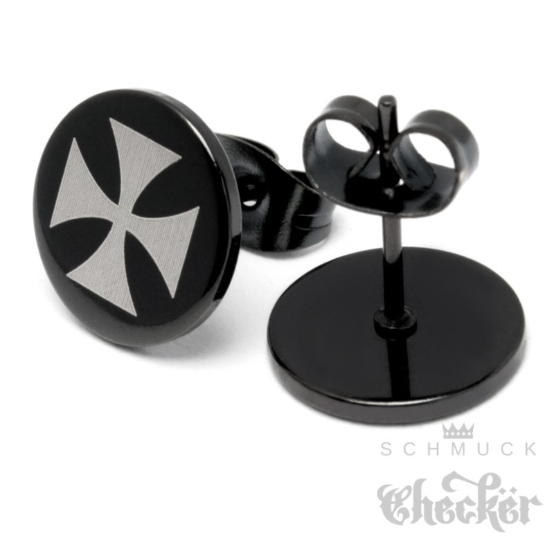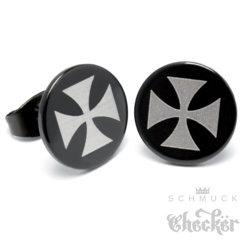 Eisernes Kreuz Ohrstecker aus Edelstahl runde schwarze Ohrringe Herren Bikerschmuck