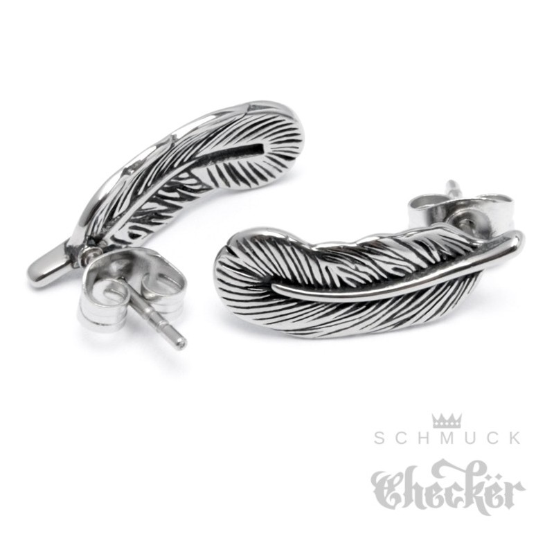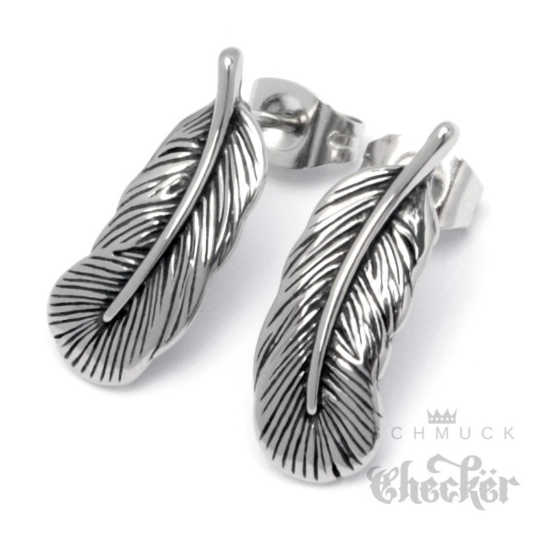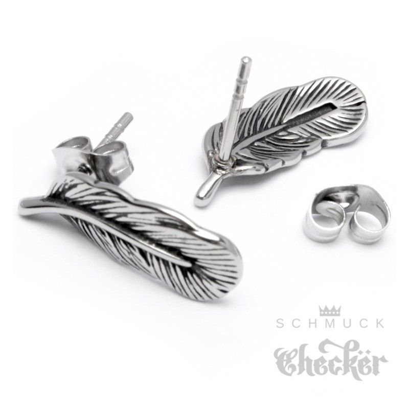 Feder-Ohrstecker aus Edelstahl Indianer Ohrringe silber hochwertig Schmuck Geschenk