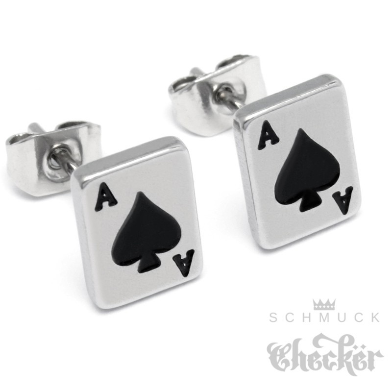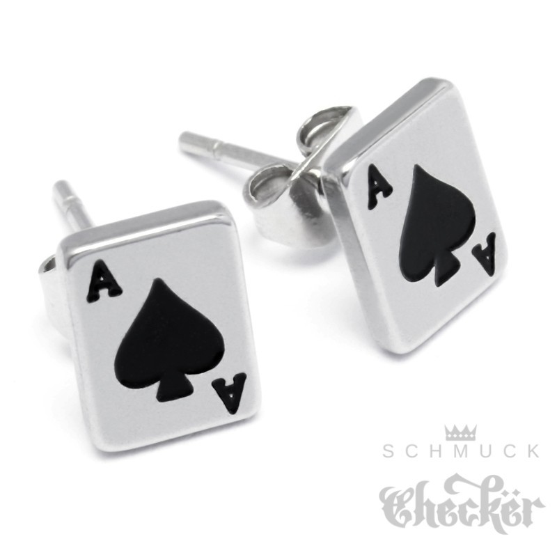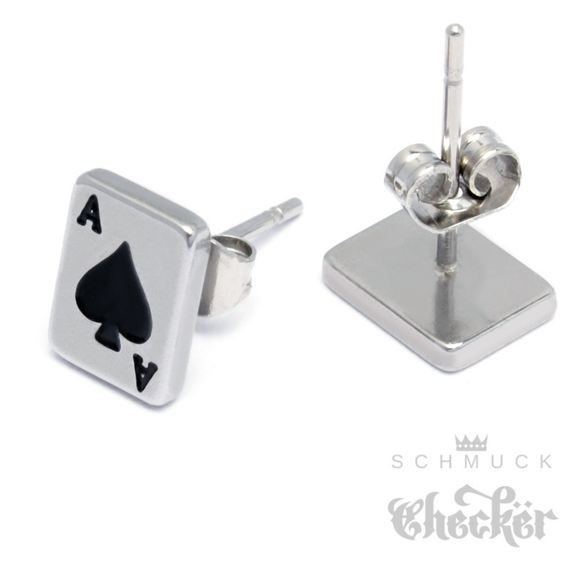 Kleine Detaillierte Pik-As Ohrstecker aus 316L Edelstahl Ace of Spades Ohrringe