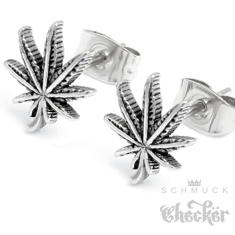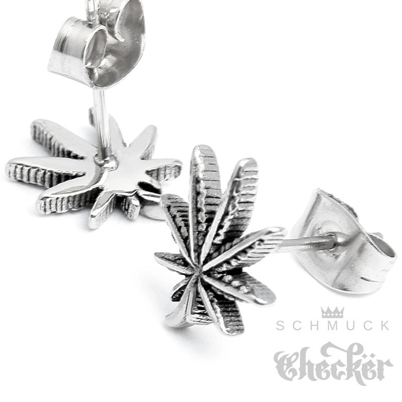 Kleine Hanfblatt Ohrstecker aus 316L Edelstahl silber Cannabis Marihuana Ohrringe