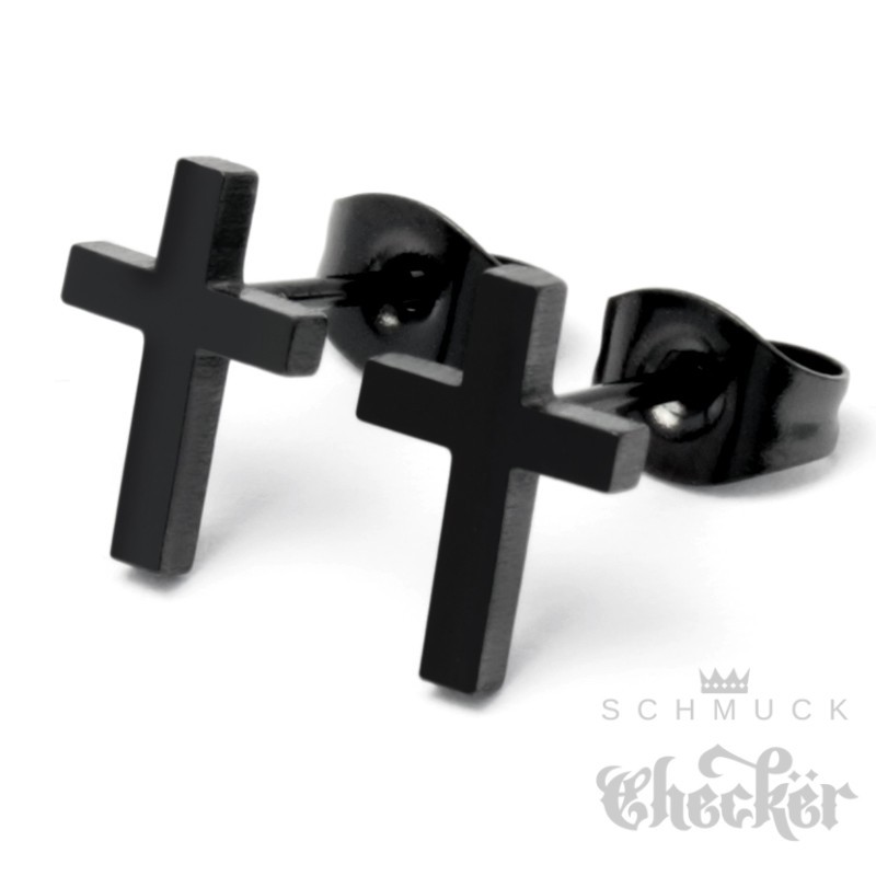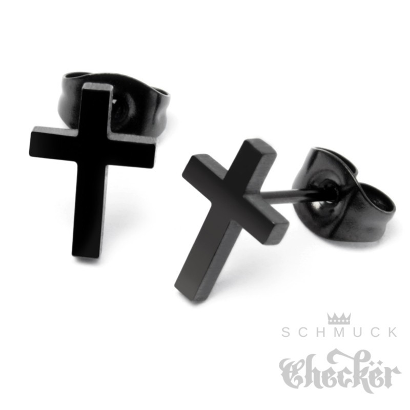 Schlichte Kreuz Ohrstecker aus geschwärztem Edelstahl Schwarze Herren Kreuz Ohrringe
