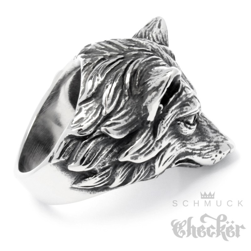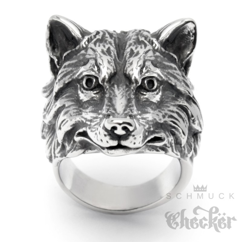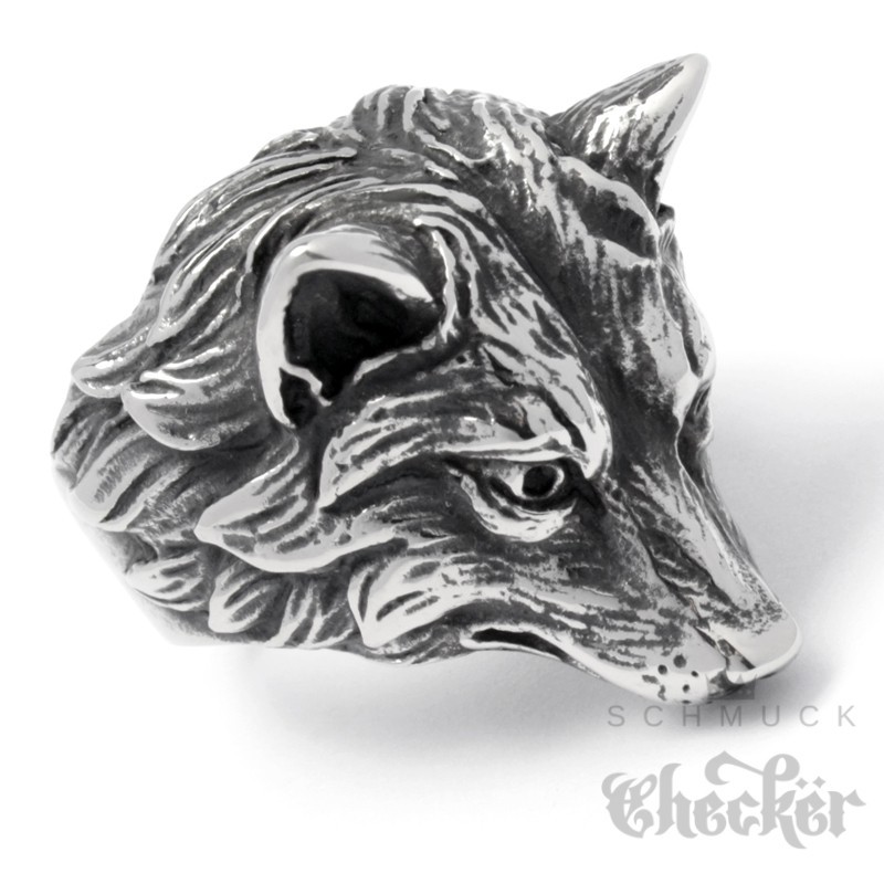 Detaillierter Bikerring mit Fuchs-Motiv aus Edelstahl hochwertig silber Fox Ring