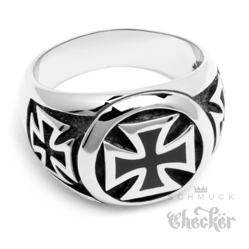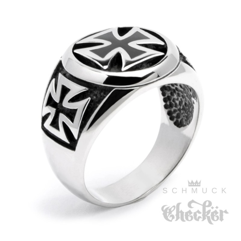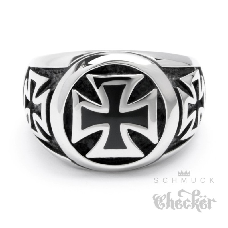 Edelstahl Biker Ring Eisernes Kreuz Herren Siegelring silber schwarz detaillert