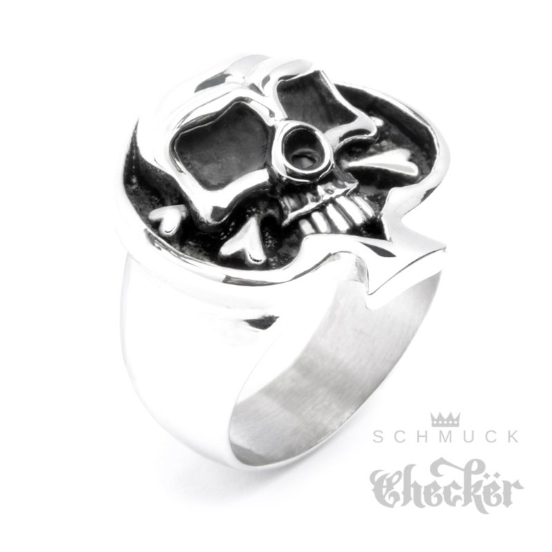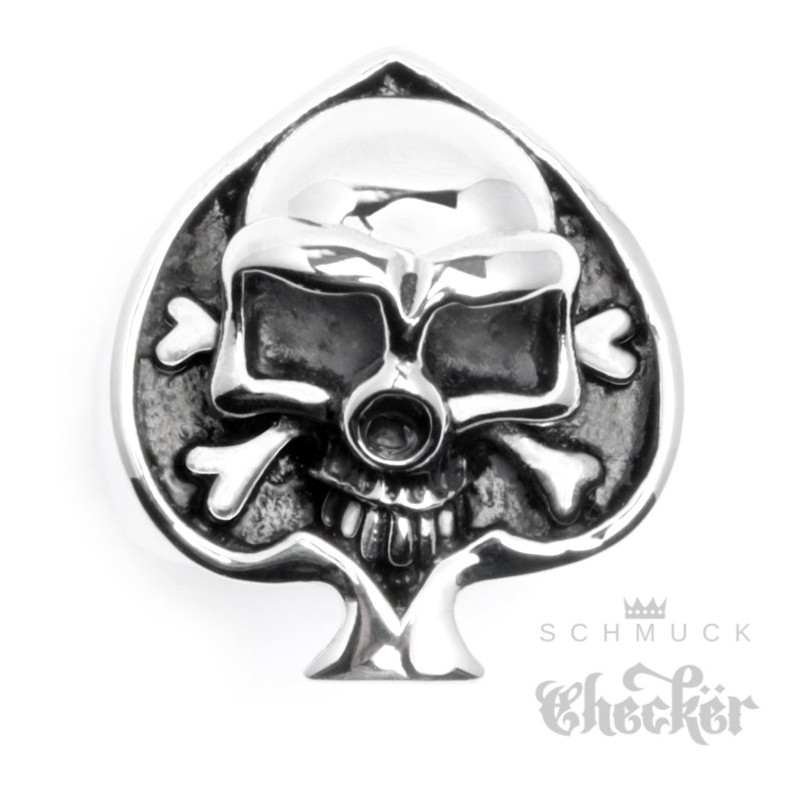 Edelstahl Bikerring Männerring Pik Totenkopf Ring hochwertig silber Poker