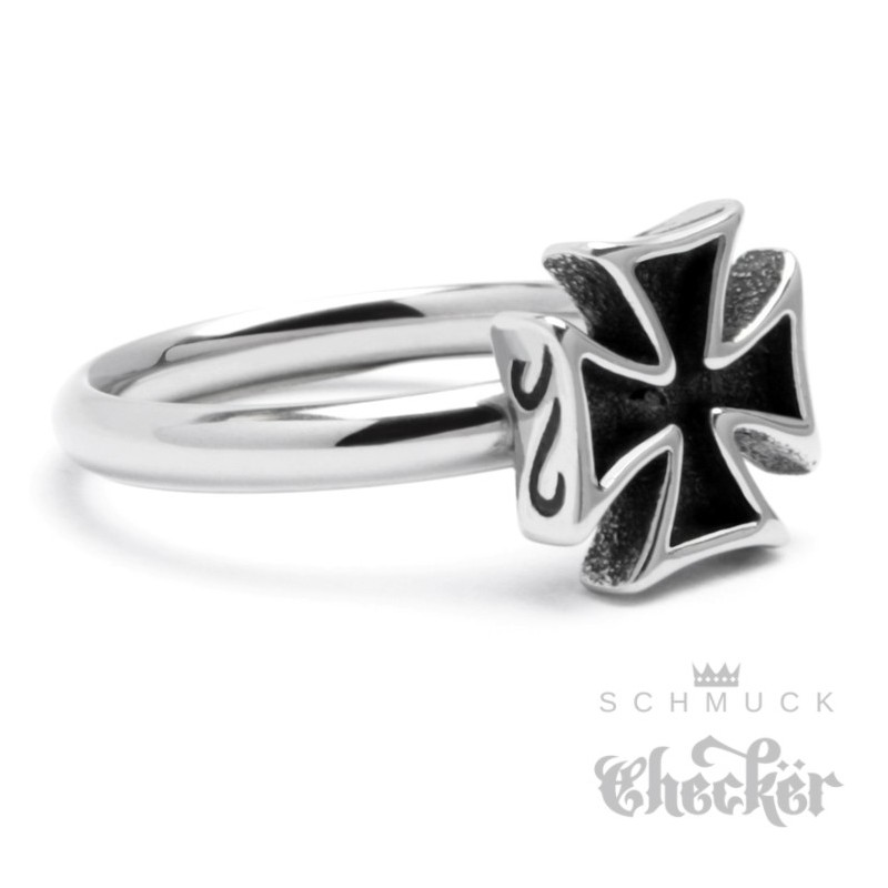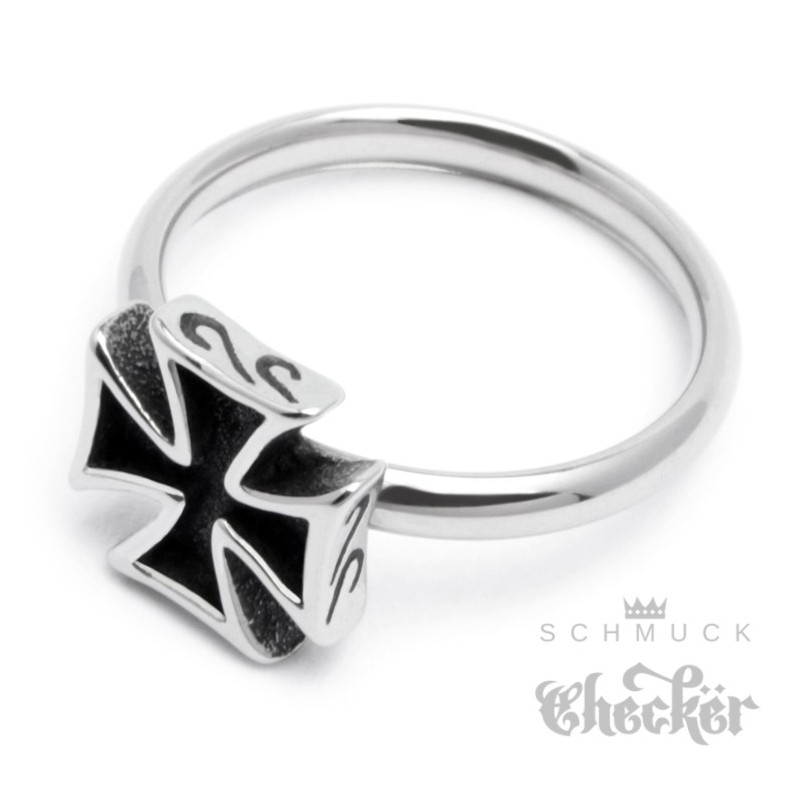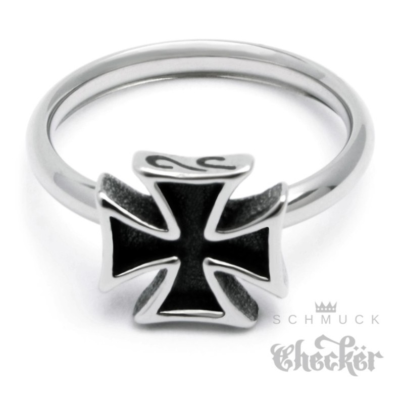 Edelstahl Damen Ring hochwertig silber schwarz Eisernes Kreuz Iron Cross Biker