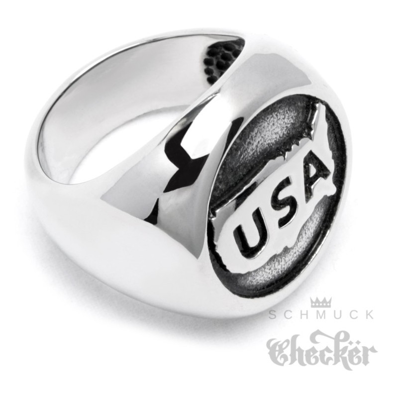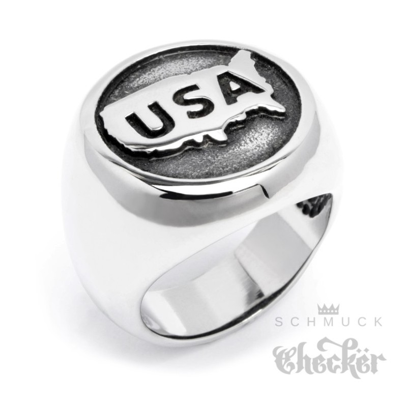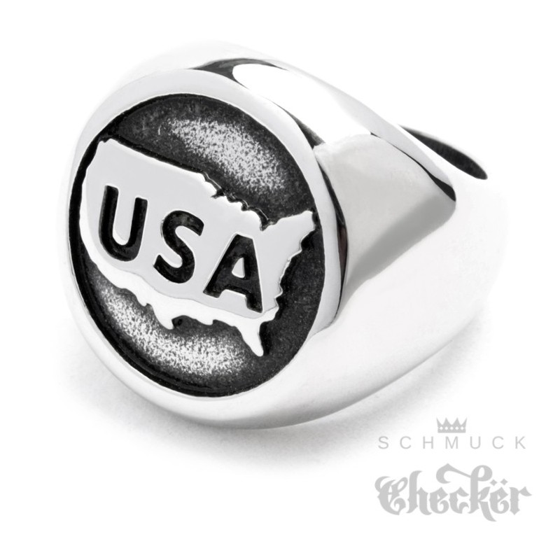 Edelstahl Herren Biker Ring USA Amerika Staaten Karte hochwertig silber Gringo