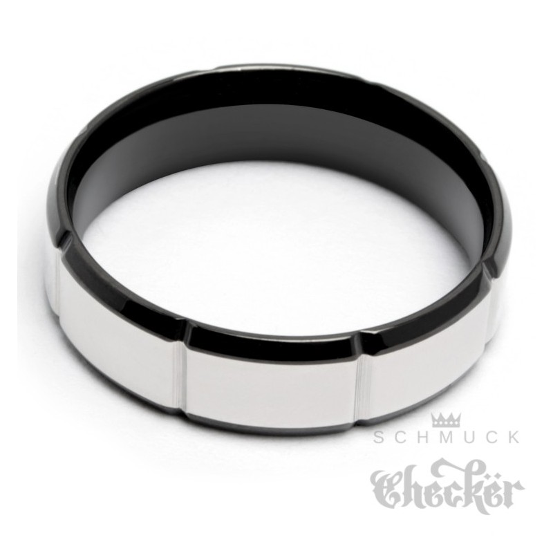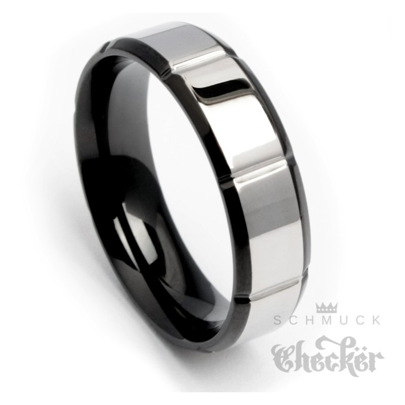 Edelstahl Herren Ring hochwertig silber schwarz Kerben massiv schick Zeitlos
