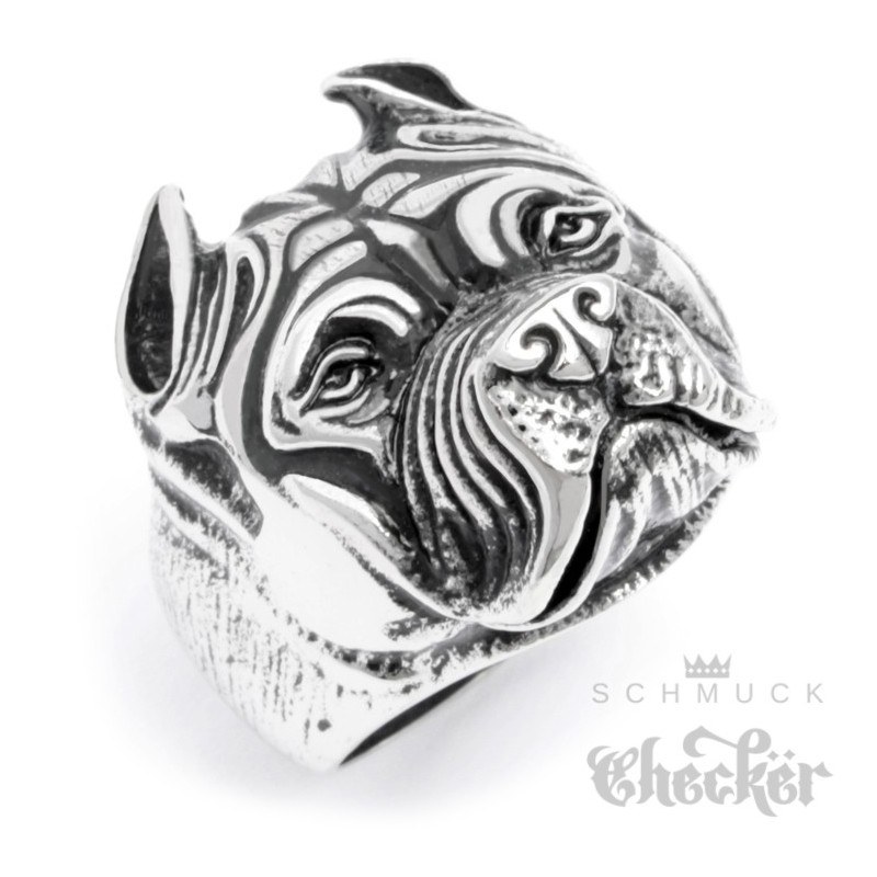 Edelstahl Herren Ring Hund Kampfhund Pitbull Dobermann Dogge Hochwertig Biker