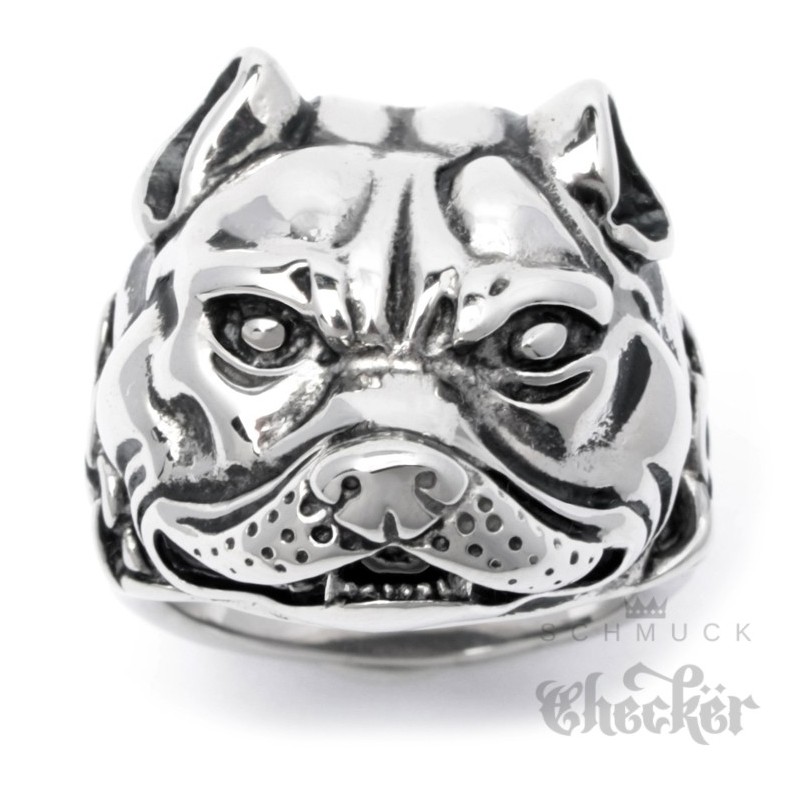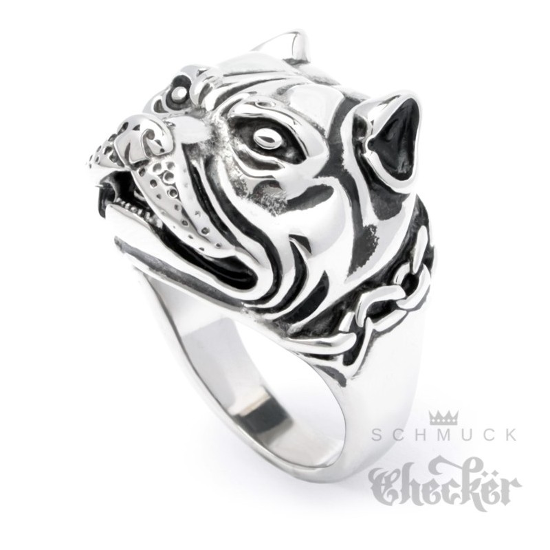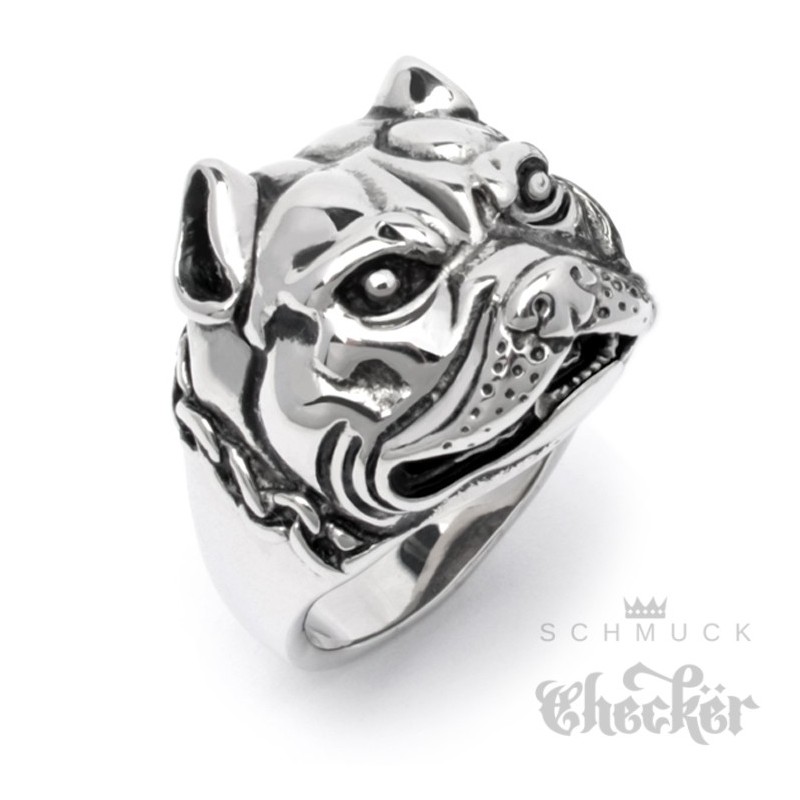 Kampfhund Ring aus massivem Edelstahl Pitbull Dobermann Dogge Hund Herren Bikerschmuck