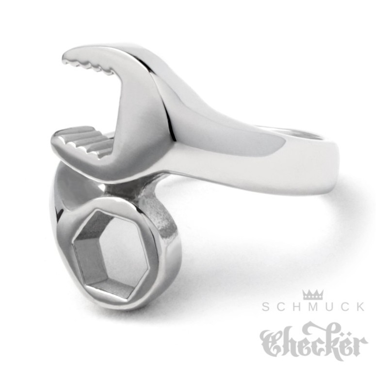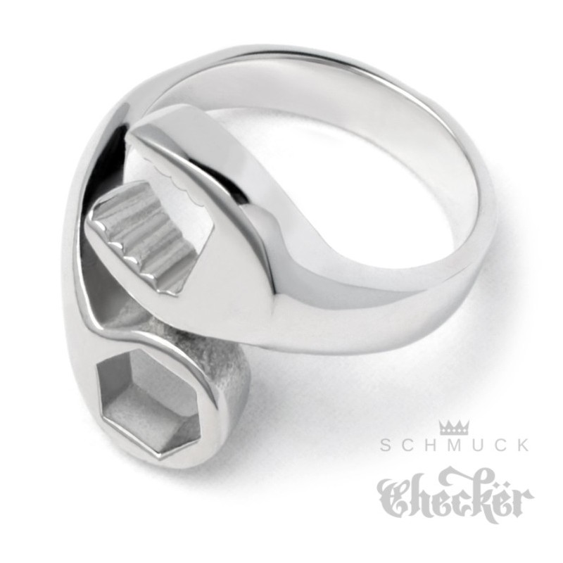 Edelstahl Herren Ring Schraubenschlüssel Mechaniker Gabelschlüssel silber massiv