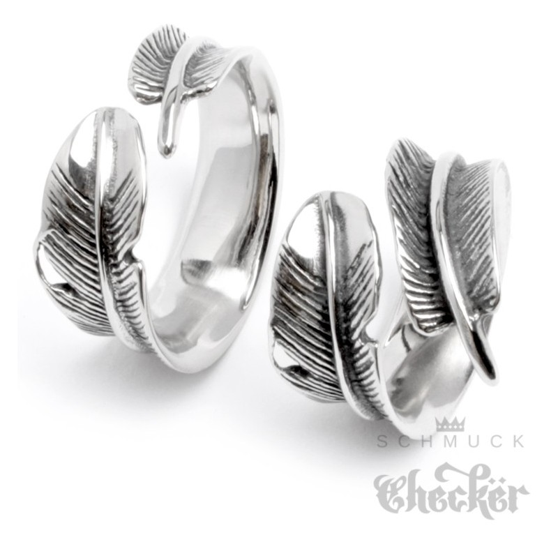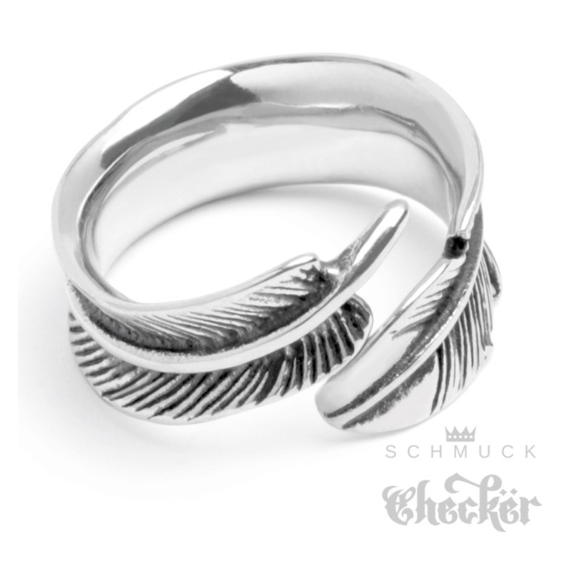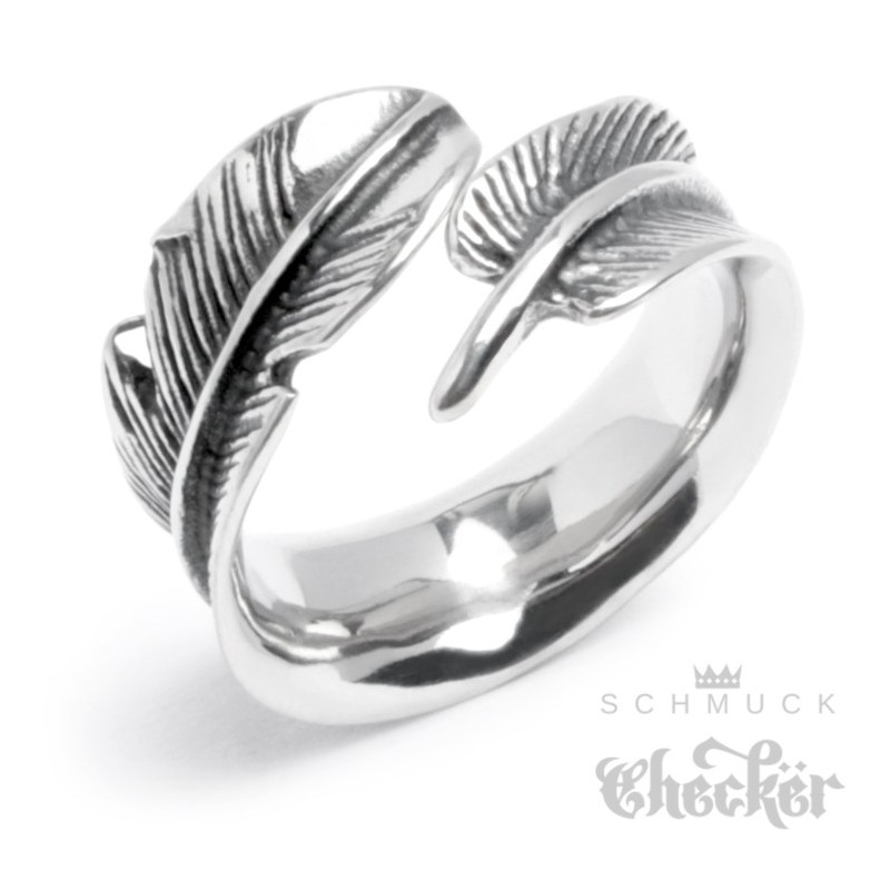 Edelstahl Ring Feder silber detailliert filigran Indianer Hippie Biker