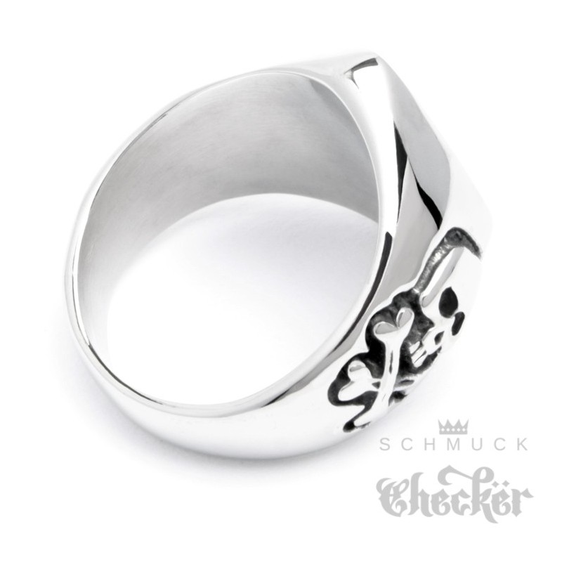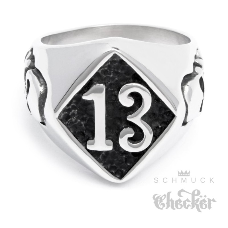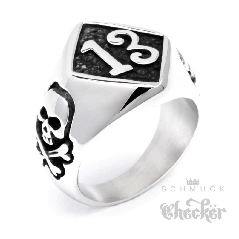 Edelstahl Ring Glückszahl Lucky 13 silber Glück Pech Totenkopf Bikerring