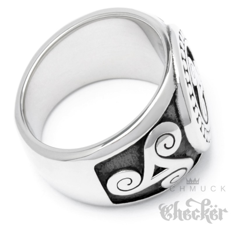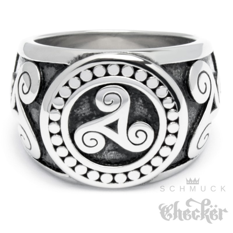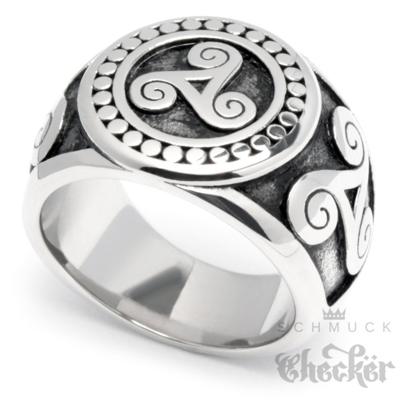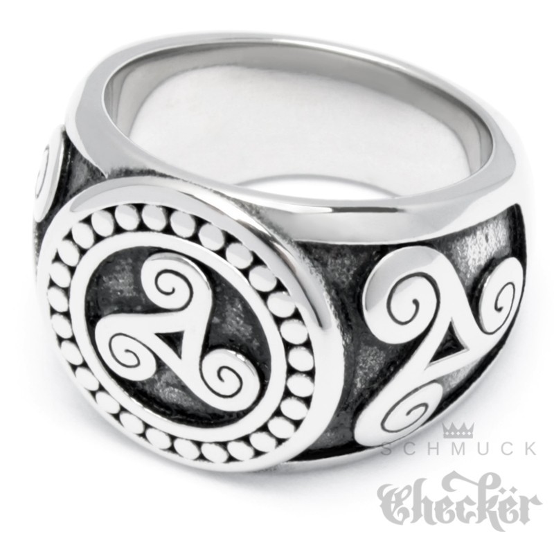 Edelstahl-Ring mit keltischer Triskele nordisch germanisch Dreier-Spirale silber massiv