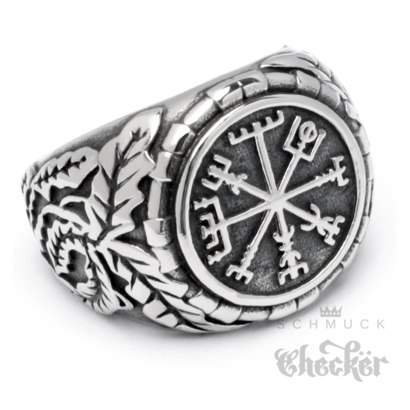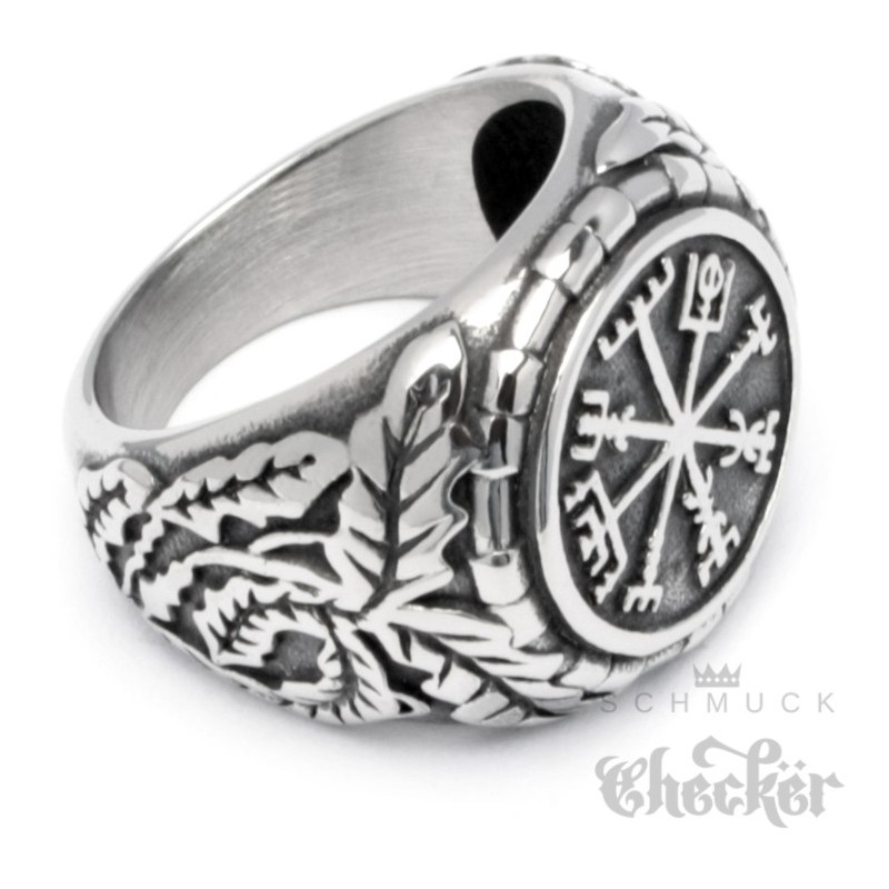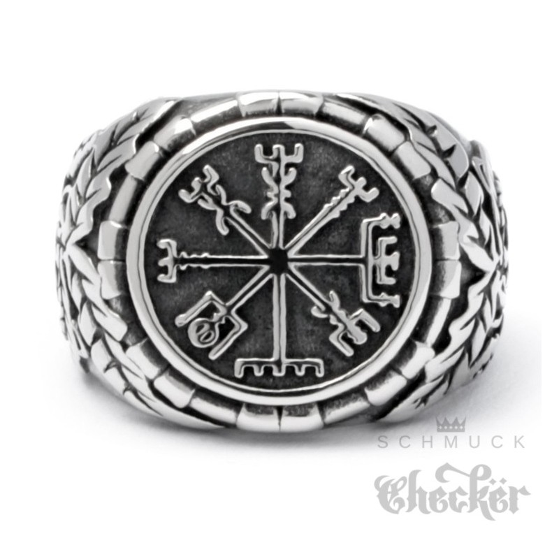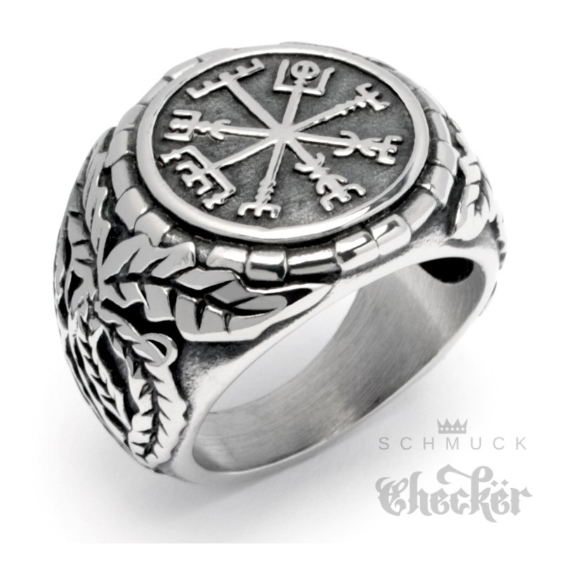Edelstahl Wikinger Ring nordisch germanisch keltisch Vegvisir Runen-Kompass Bikerring