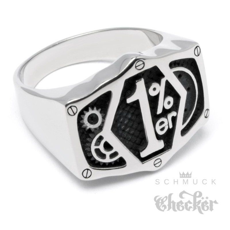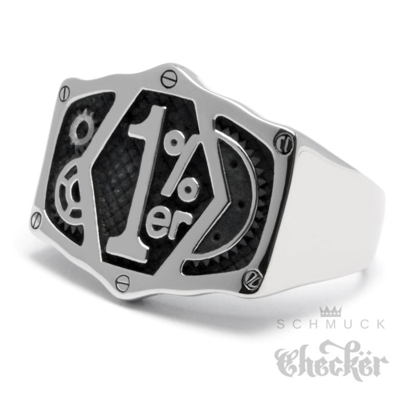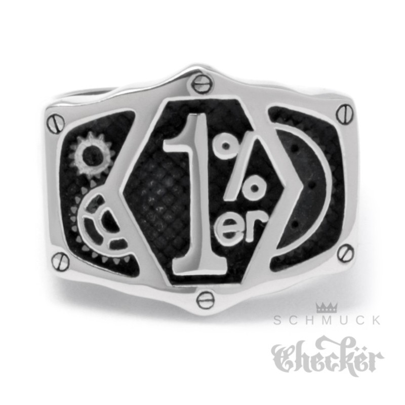 Einprozenter Ring aus Edelstahl Outlaw Gesetzlos 1%er Onepercenter Bikerring Zahnrad