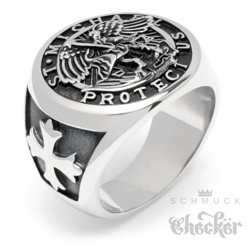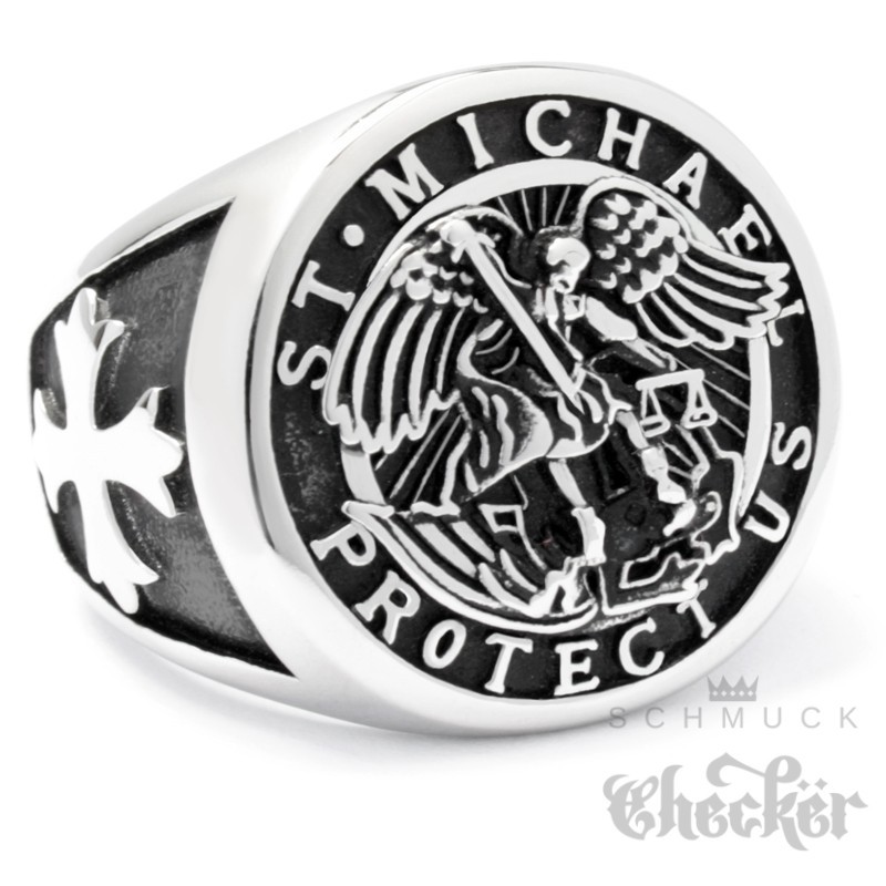 Erzengel St. Michael Ring aus Edelstahl Christlicher Bikerschmuck Kreuz Engel