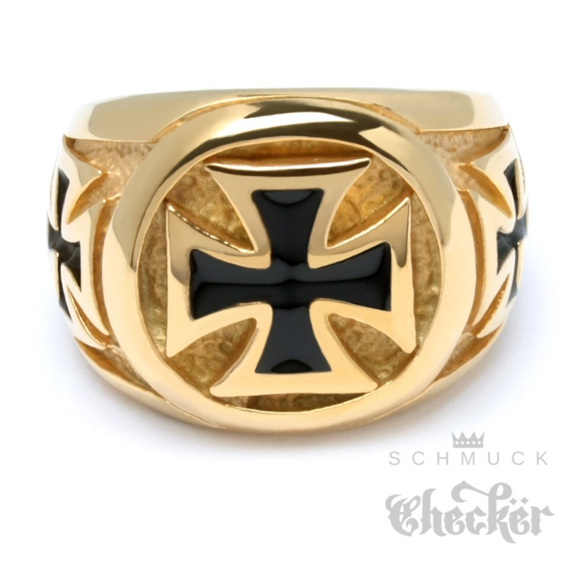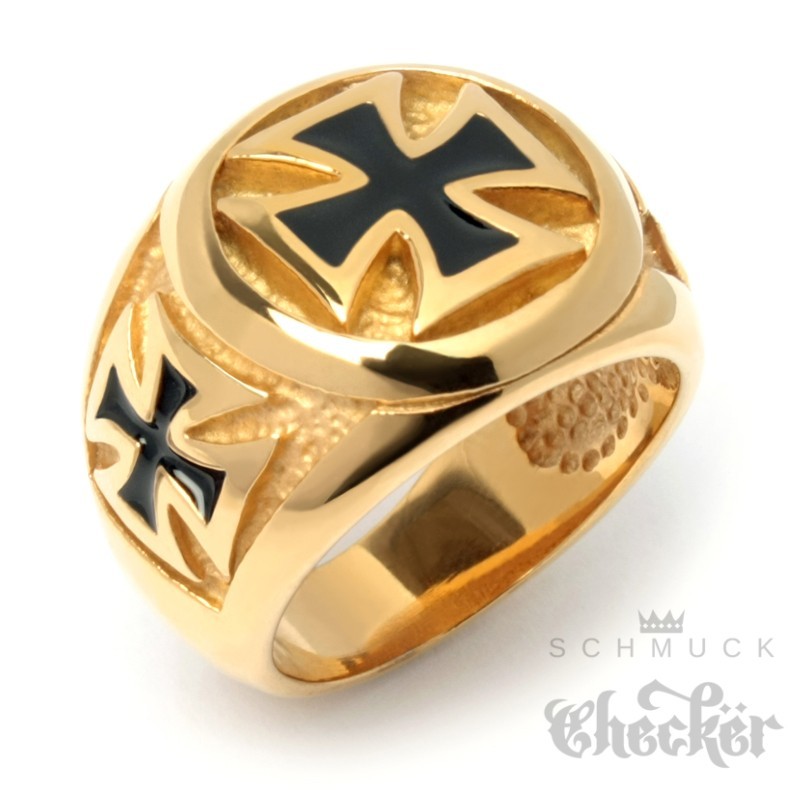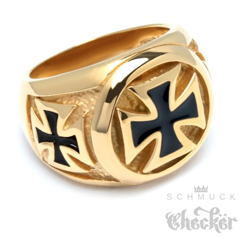 Goldener Ring mit 3 Eisernen Kreuzen Edelstahl Ring Iron Cross Siegelring Biker