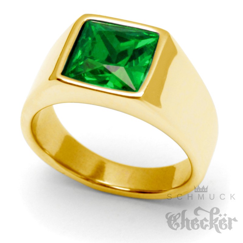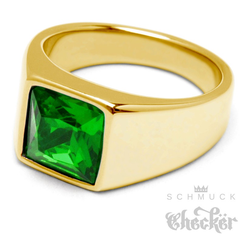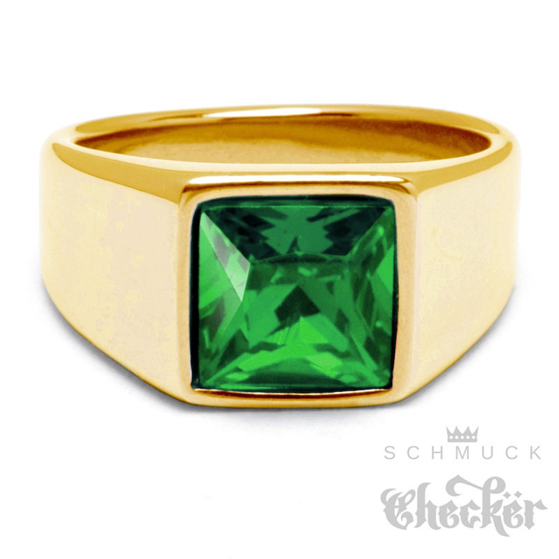 Goldener Ring Solitär Stein Smaragd-Grün für den kleinen Finger Edelstahl vergoldet