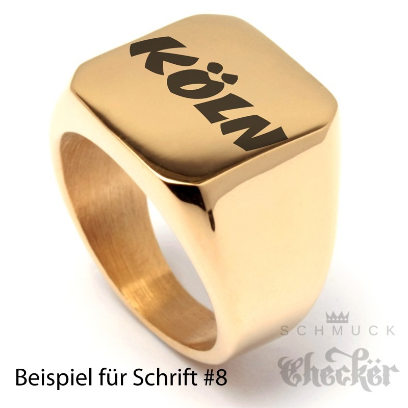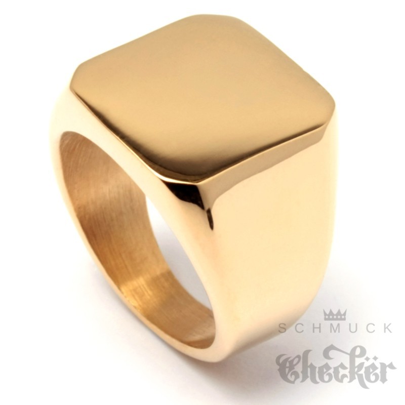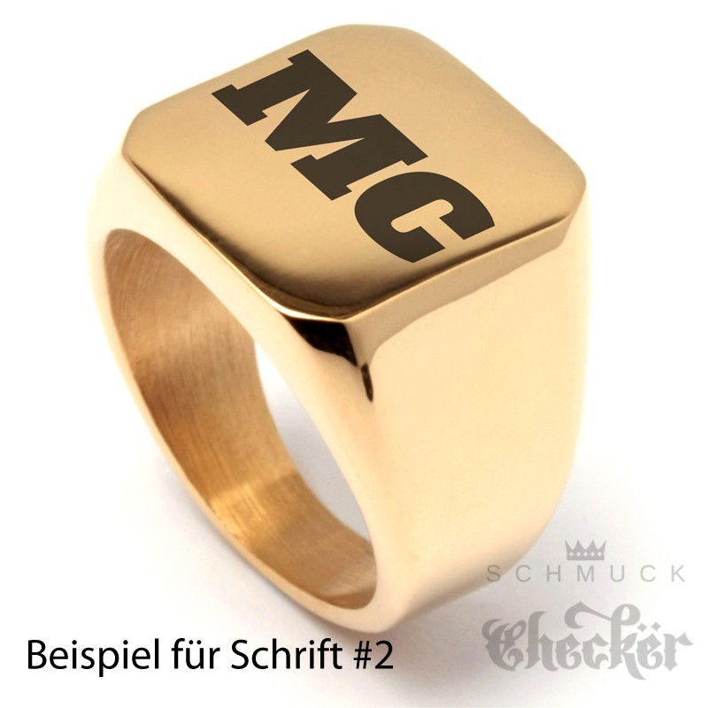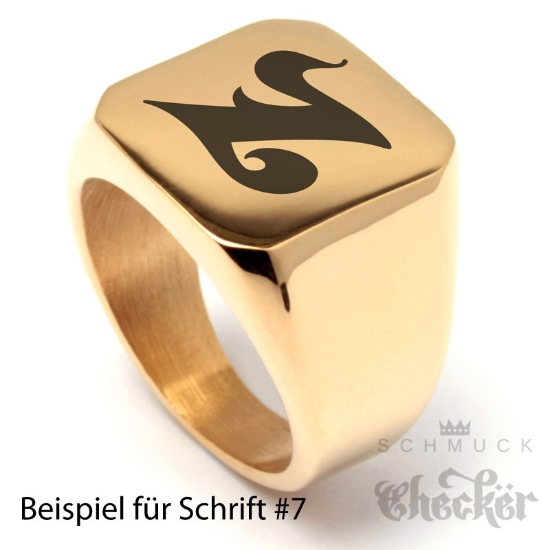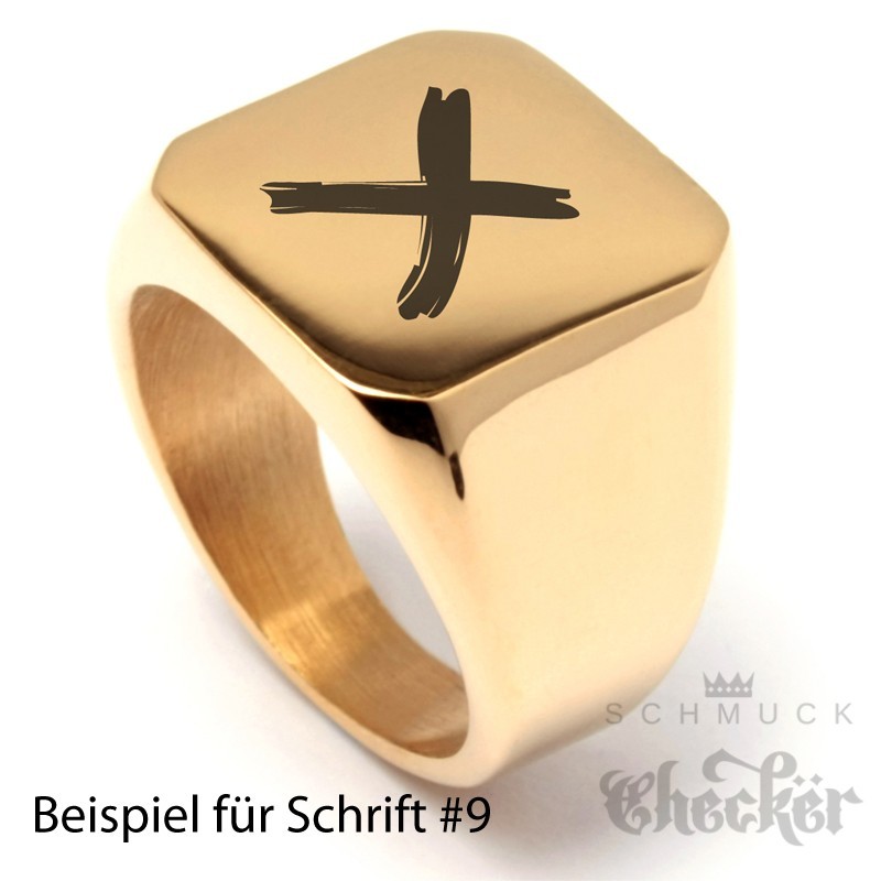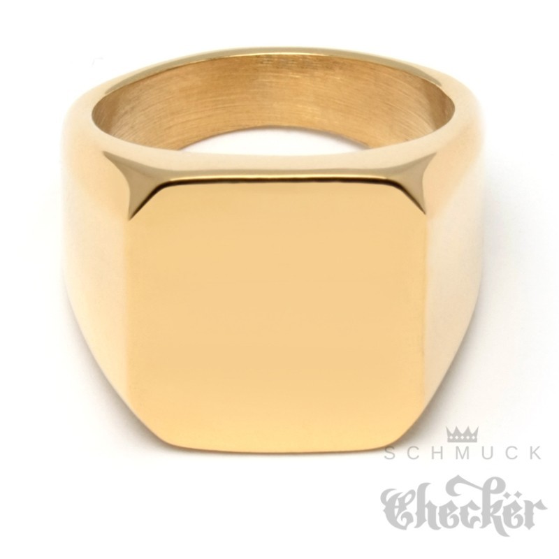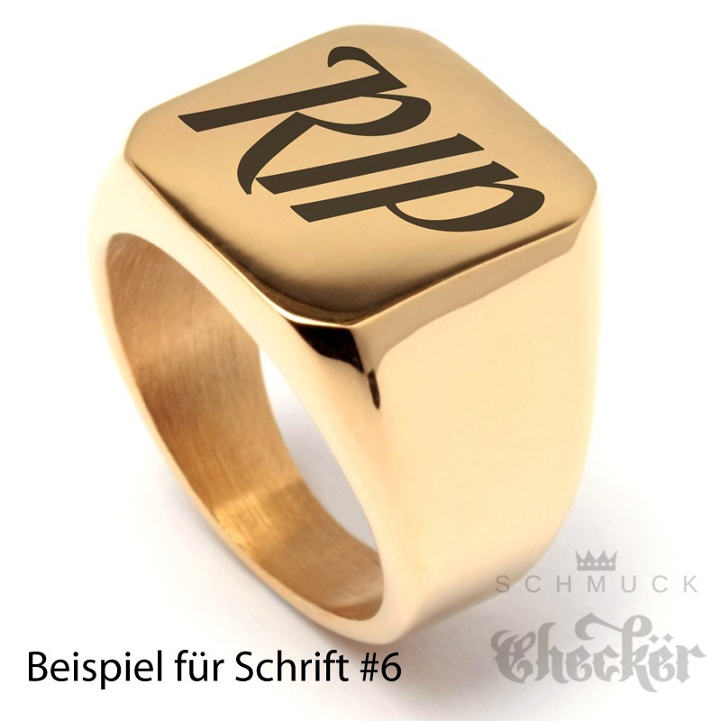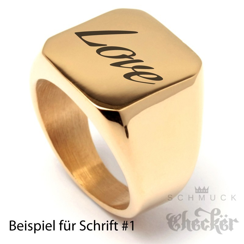 Goldener Siegelring mit Gravur aus Edelstahl vergoldet viereckig Männer Geschenk